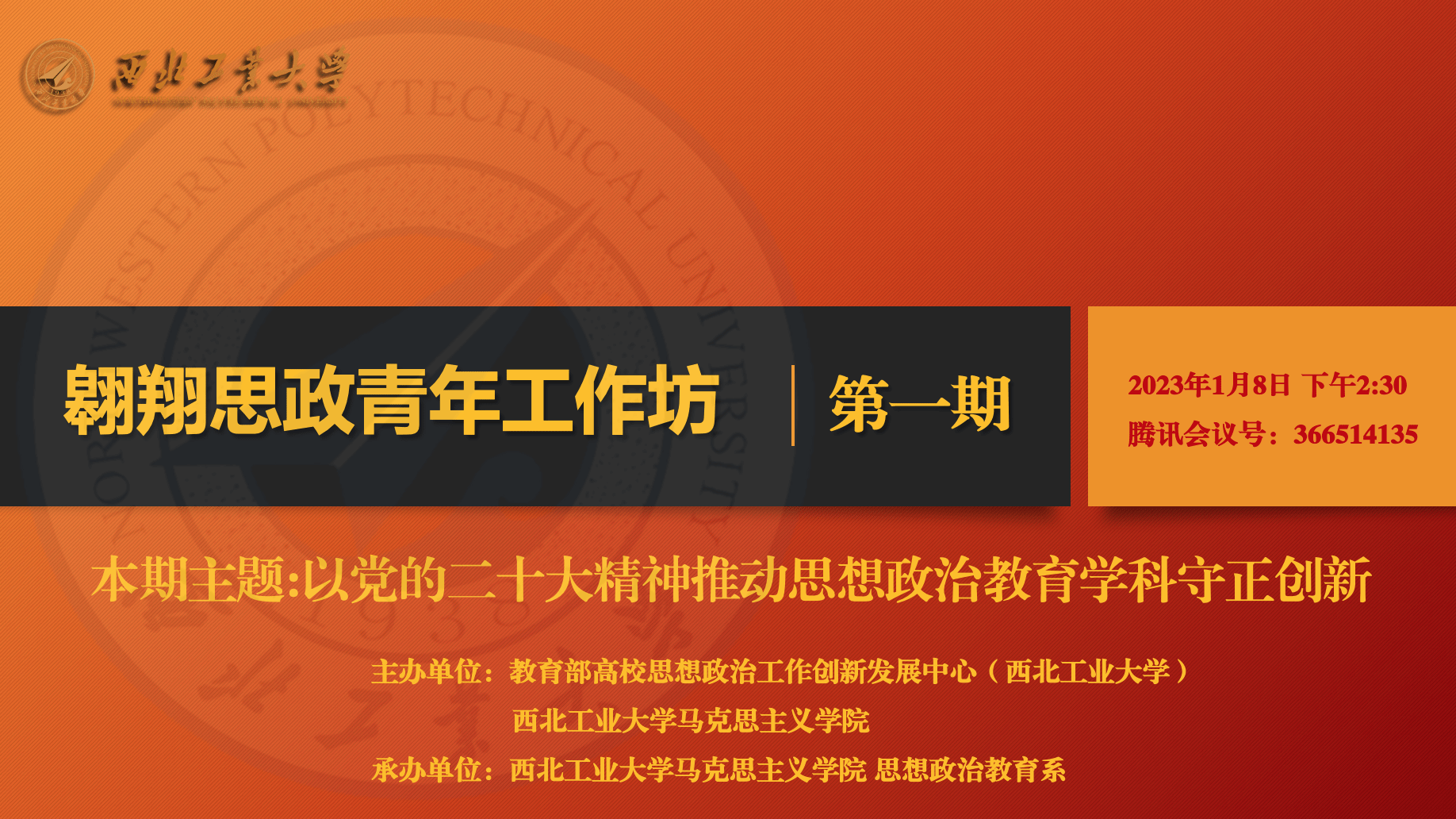 为深入学习贯彻落实党的二十大精神,加强对新时代思想政治教育基础理论、前沿热点的认识与研究。1月8日,太阳成tyc122cc翱翔思政青年工作坊(第一期)在线上成功举行。本工作坊由教育部高校思想政治工作创新发展中心(太阳成tyc122cc)、太阳成tyc122cc主办,太阳成tyc122cc思想政治教育系承办。本期工作坊共邀请了六位优秀的青年思政学者,围绕党的二十大精神和新时代思想政治教育的守正创新问题,展开主题发言和互评对谈。