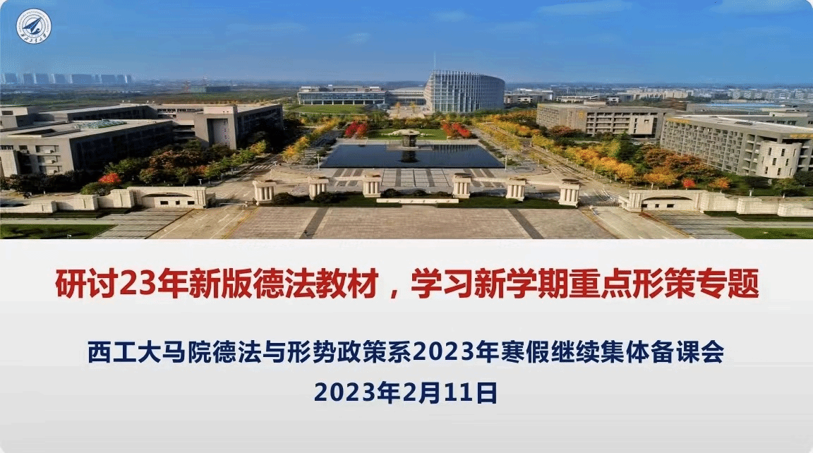 德法与形势政策系组织全体专兼职教师于线上召开了“研讨2023年新版德法教材,学习新学期重点形策专题”2023年寒假继续集体备课会。系主任高宝营副教授带领各位老师研讨2023年新版《思想道德与法治》课程教材,学习新学期《形势与政策》课程重点专题“立志复兴伟业,踔厉奋发前行”。与会教师就新版教材与《形势与政策》专题是如何融入和体现党的二十大精神的教学内容和教学方法进行了广泛研究和探讨。会议总结了新版教材中重点融入及体现党的二十大精神的专题内容,就重点专题“立志复兴伟业,踔厉奋发前行”的教学内容与教学方式等方面交流意见。通过本次寒假继续集体备课,全体教师对新学期教学有了更准确的指导思想遵循、更丰富的备课知识掌握与更坚实的公司产品信心。