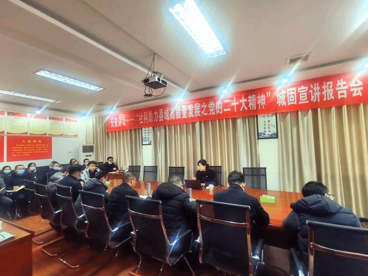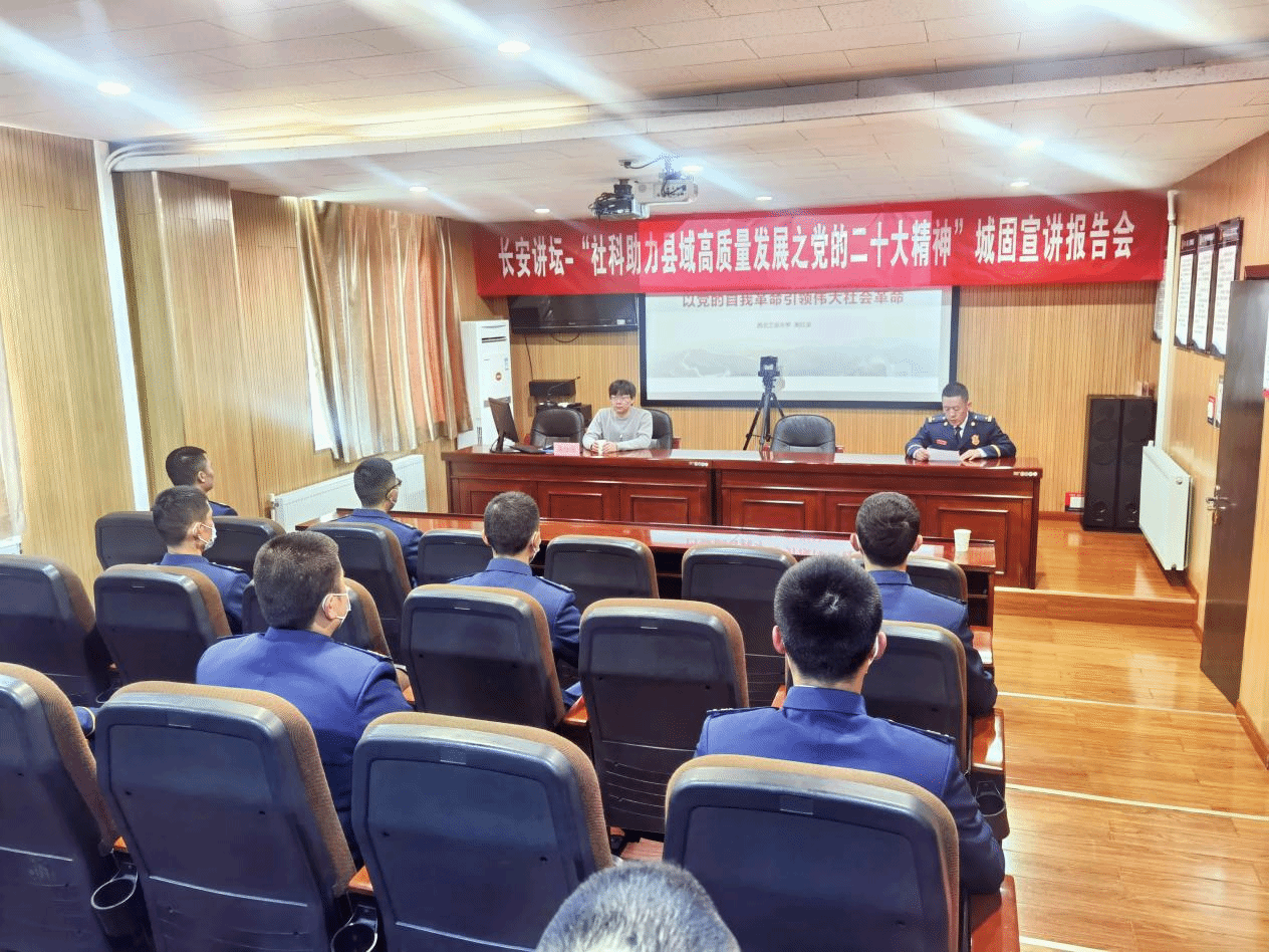 党的二十大是在我国迈上全面建设社会主义现代化国家新征程、向第二个百年奋斗目标进军的关键时刻召开的一次十分重要的大会,举国关注、世界瞩目。党的二十大担负起全党的重托和人民的期待,从战略全局深刻阐述了新时代坚持和发展中国特色社会主义的一系列重大理论和实践问题,科学谋划了未来一个时期党和国家事业发展的目标任务和大政方针,在党和国家历史上具有重大而深远的意义。学习宣传贯彻好党的二十大精神,是当前和今后一个时期全党全国的重要政治任务,也是社科工作者必须肩负起的重大历史责任。2023年2月9日至10日,“社科助力县域高质量发展”太阳成tyc122cc“党的二十大精神宣讲团”赴城固县开展理论宣讲。本次宣讲活动由太阳成tyc122cc高红波副教授、王换助理教授、宫淑燕副教授等一行3人,先后赴城固县消防救援大队、城固县发改系统作宣讲报告,相关部门人员参加了报告会。