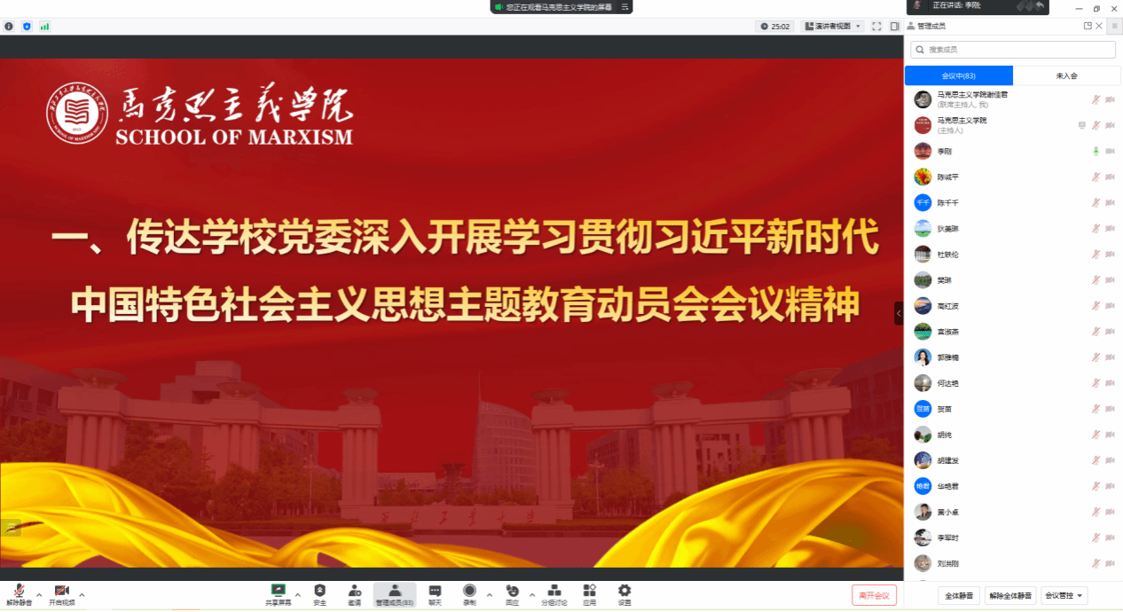 公司党委副书记(主持工作)蒲传新强调,公司全体教师要就主题教育的要求提高站位,把思想和行动统一到公司党委的安排和部署上来,统一到公司的中心工作上来;要有大局意识,强化岗位责任,加强工作落实;把做好党的二十大精神宣讲、研究阐释“总师文化”、推进思政课改革创新等作为主题教育的重大实践和工作载体;要发挥各系各支部的作用,在理论学习、调查研究、推动发展、检视整改、建章立制等方面挖掘新闻线索,总结先进典型,加强宣传报道,营造良好氛围。