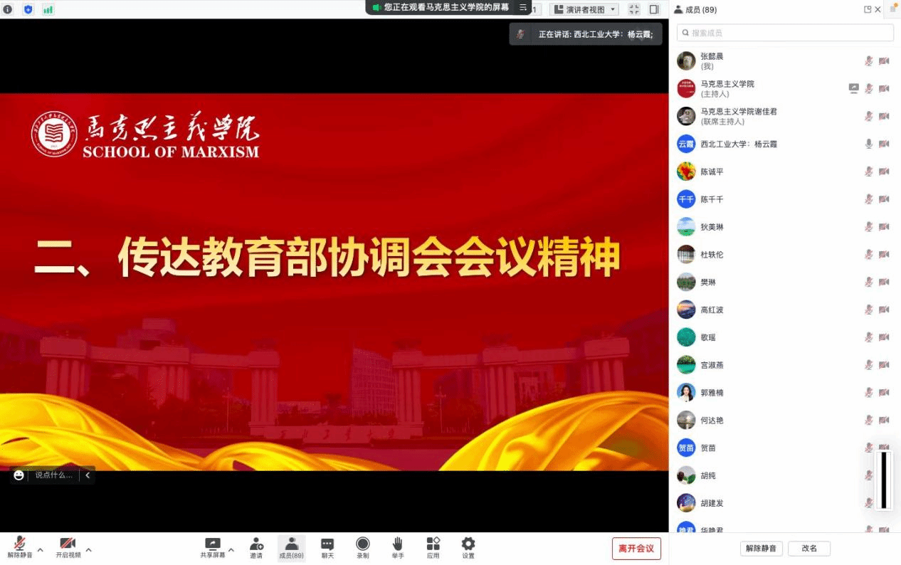 会议最后,杨云霞作总结,她要求全体思政课教师要不断提升自身素质,深耕思政课公司产品,坚持不懈用习近平新时代中国特色社会主义思想和党的二十大精神凝心铸魂,不断凝练和弘扬“总师文化”,培养红专人才,为公司“双一流”建设贡献更多智慧和力量。