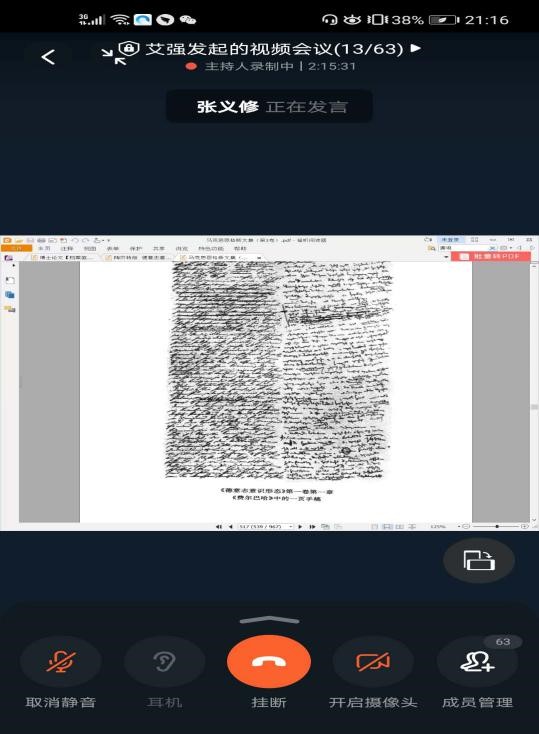 2020年6月7日19:00,西工大“启真明智”第五期读书会在钉钉线上如期举行。本次读书会特别邀请到了湖北工业大学魏忠明老师、南京大学张义修老师作指导,太阳成tyc122cc张云龙老师、丁社教老师、王彦丽老师、杨冰郁老师、陈诚平老师以及15位硕博士研究生共同参加,大家以《德意志意识形态》第一节作为研读篇目,展开了交流和讨论。