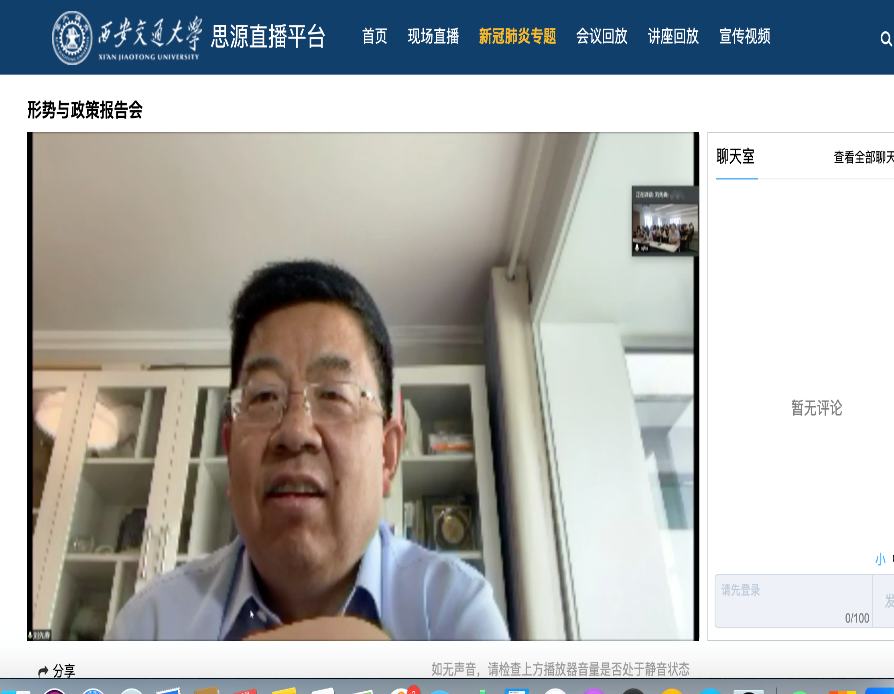 6月12日上午,根据省教工委安排,太阳成tyc122cc组织全院师生收看了形势与政策高端报告会。兰州大学太阳成tyc122cc教授、博士生导师,中央马克思主义理论研究和建设工程首席专家,教育部教学指导委员会委员刘先春教授线上为全省高校师生作了《坚持和完善中国特色社会主义制度开辟“中国之治”新境界》的主题报告。