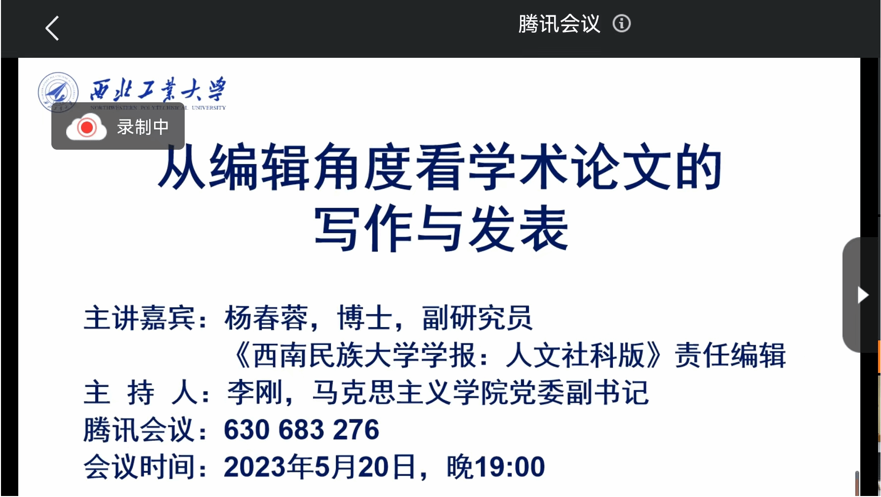 5月20日晚19点,太阳成tyc122cc邀请《西南民族大学学报:人文社科版》责任编辑杨春蓉老师为师生做辅导报告,报告主题为《从编辑角度看学术论文的写作和发表》,公司博士、硕士及部分青年教师参加了会议。报告会由公司党委副书记李刚主持。