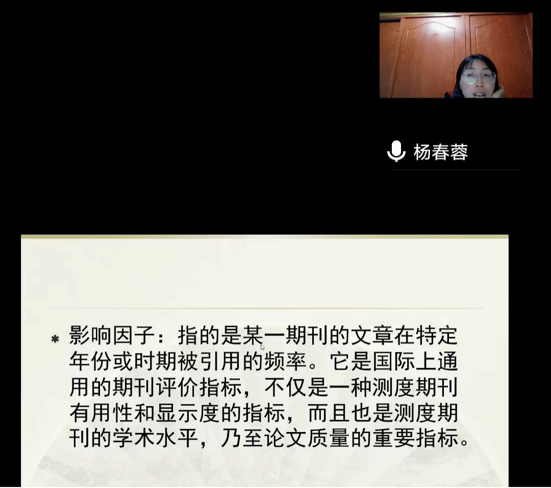 报告会中,杨春蓉老师结合自身多年编辑工作实际,从三个方面进行了详细的介绍。首先,论文写作与投稿应做到“知己知彼”。一方面要善于研究期刊,知悉核心期刊的评价标准,特别是影响因子的重要性;另一方面应注重论文选题的前沿性、创新性、可靠性与应用性,从服务社会、服务热点出发选取研究主题。其次,期刊投稿要做到“有的放矢”。在选题前应思考论文服务的领域与具体方向,注重检索前人的研究成果,掌握相关主题的已有研究现状,进而确定自己的研究主题和方向。应关注相关期刊的栏目设置,要有针对性地进行投稿。在投稿中应积极与意向刊物的编辑进行沟通,了解审稿进度。最后,论文写作要注意规范。尤其是要坚持正确的政治方向,在语言表述上准确规范使用相关词汇,在文章内容上注重弘扬主旋律,传递正能量。