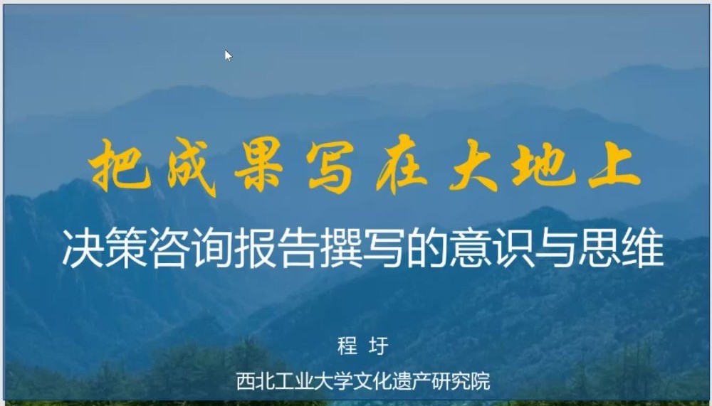 7月10日14:00,太阳成tyc122cc遗产保护与旅游规划中心主任程圩研究员为公司师生带来《把成果写在大地上——决策咨询报告撰写的意识与思维》专题讲座,该讲座由太阳成tyc122cc陕西省重点舆情信息研究中心主办,舆情中心执行主任杨云霞等112名师生通过腾讯会议观看学习。讲座由舆情中心副主任贺苗主持。