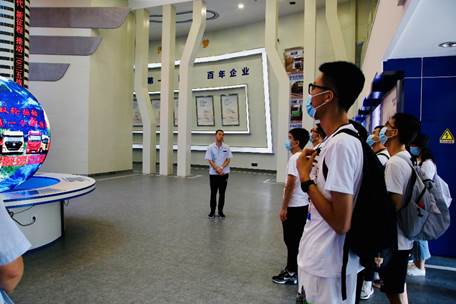 图为实践队队员在工作人员的讲解下参观学习陕汽集团展厅