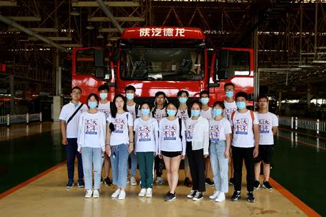 图为实践队队员在陕汽集团装配车间合影留念