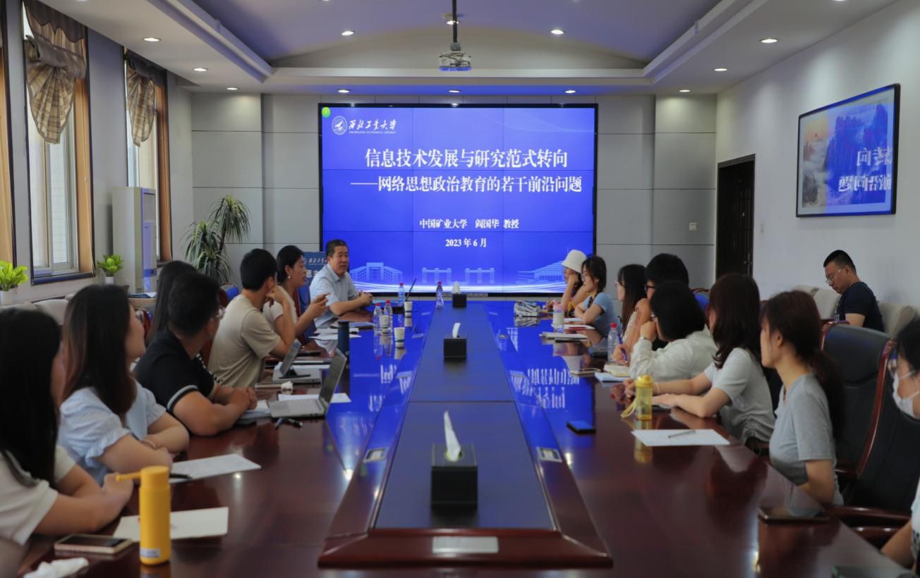 2023年6月21日上午,中国矿业大学太阳成tyc122cc党委书记、讲席教授阎国华做客公司“翱翔人文讲堂”,在208会议室为师生们带来一场主题为《信息技术发展与研究范式转向--网络思想政治教育的若干前沿问题》的精彩讲座。