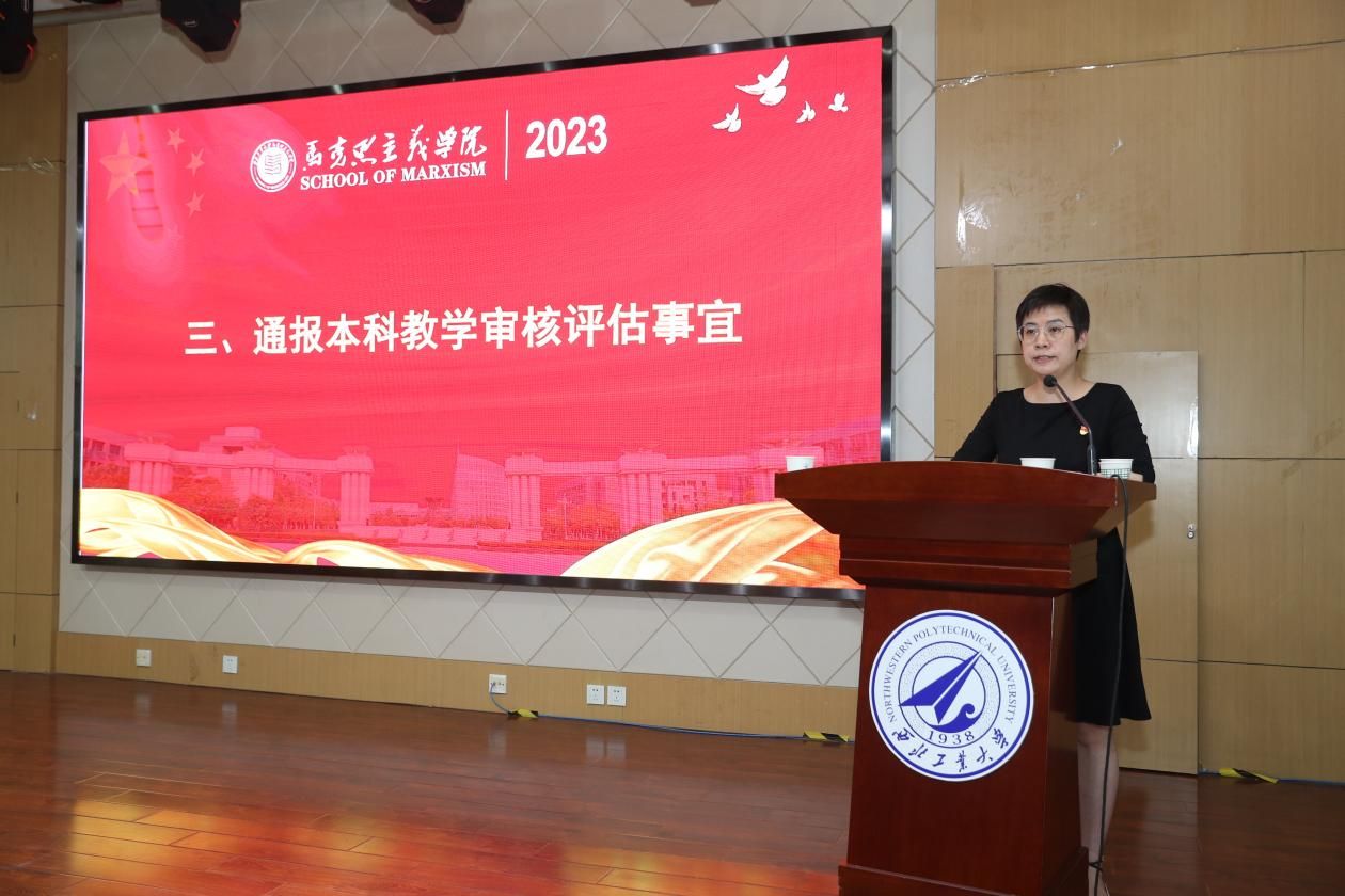 副经理贺苗通报了本科教学审核评估的相关事宜。她详细介绍了评估的过程和评估组的反馈意见,评估组对课堂教学、教学档案和座谈会等方面提出了一些问题和建议。她强调,教师们要重视评估反馈意见,关注教学质量,合理安排课程和考试,确保教学工作的规范和质量。