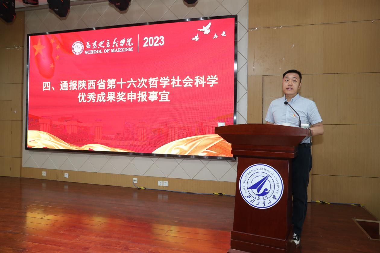 经理助理马军通报了陕西省第十六届哲学社会科学评奖的申报事宜。他介绍了申报流程和要求,并鼓励教师们积极参与评奖活动,展示自己的研究成果。