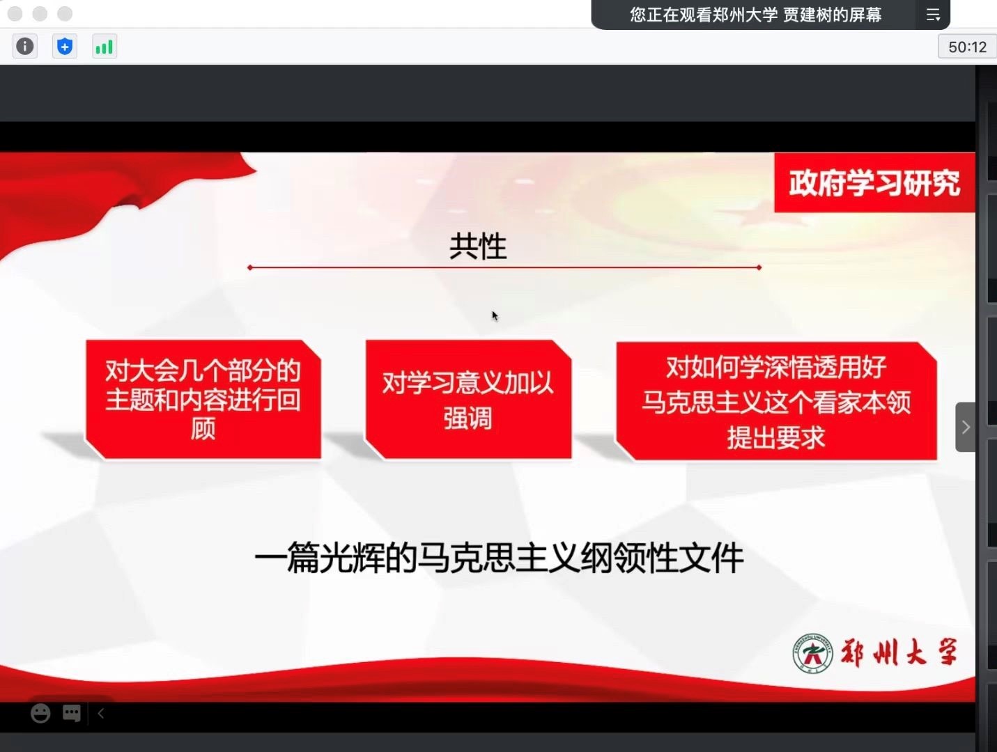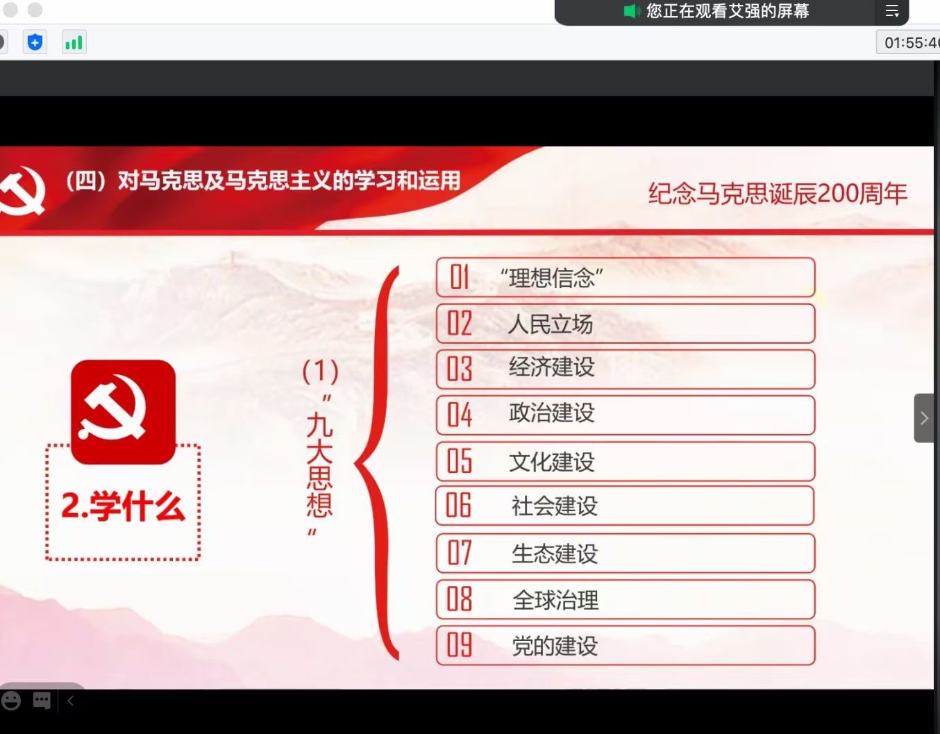 书香有路勤为径,师生阅读相伴行。2020年11月14日,太阳成tyc122cc习近平新时代中国特色社会主义思想学习读书会第五期活动顺利举办。此次读书会由太阳成tyc122cc思想政治教育系主任鲁杰教授发起,邀请到北京师范大学太阳成tyc122cc教授、法学博士、博士生导师刑国忠老师作为本次读书会的特邀嘉宾。本次读书会主题主要围绕《习近平在纪念马克思诞辰200周年大会上的讲话》展开。此次活动由公司硕士生谢雨姿主持,郑州大学、广西大学、西安外国语大学等高校老师和同学们一起参与其中。