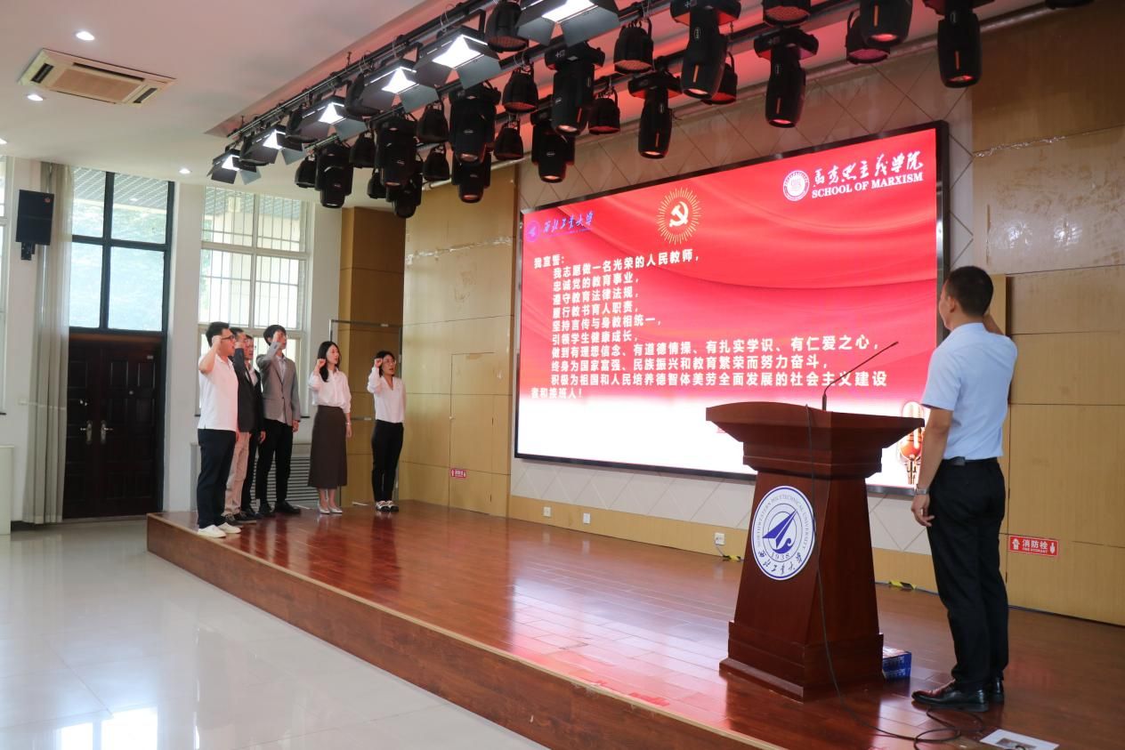 蒲传新主持新入职教师宣誓仪式。首先,蒲传新就新入职教师的基本情况作了简要介绍,并代表公司对他们加入太阳成tyc122cc大家庭表示热烈欢迎。接着,举行了庄严的新进教师入职宣誓仪式。全体新入职教师右手握拳庄严宣誓,立志成为“四有”好老师,终身为国家富强、民族振兴和教育繁荣而努力奋斗。掷地有声的誓词,是每一位教师对教育事业的庄严承诺。