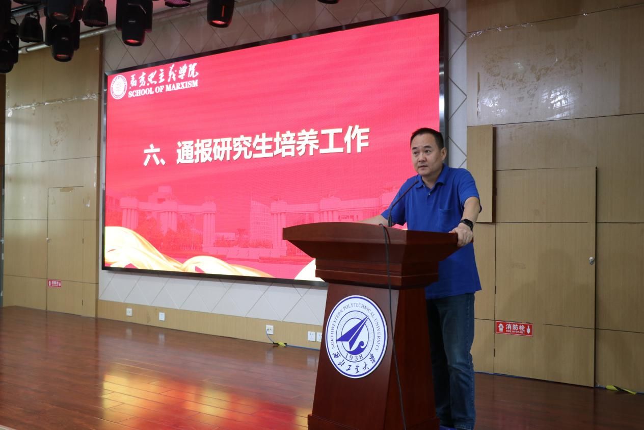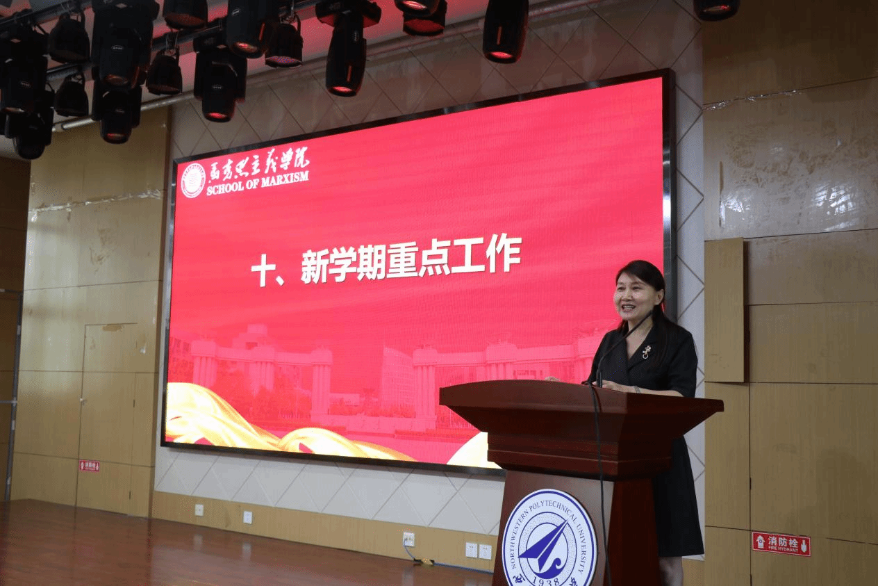 公司副经理贺苗通报本科公司产品审核评估和新学期思政课教学工作。她再次强调了教学档案的规范整理工作和注意事项;同时,强调了新学期的思政课教学工作需要加强意识形态层面的重要性的认识,教师要进一步加强“总师育人文化”和公司“127”目标的阐释,加强对西工大元素的体现,不断增加教学产出。