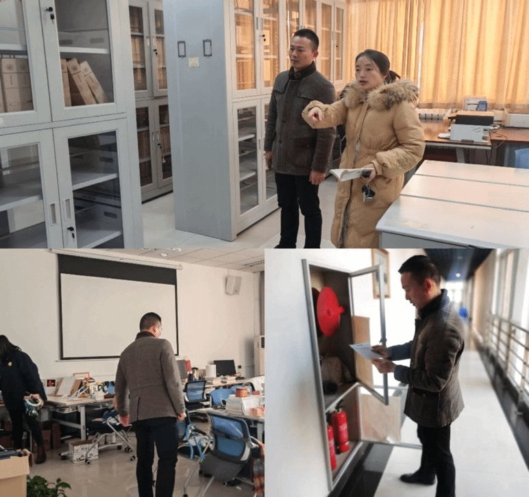 1月19日公司党委副书记李刚、办公室主任郭雅楠、安全员、资源保障秘书等一行4人进行节前安全检查工作;重点检查了公司楼会议室、档案室、图书资料室、自习室、办公室以及楼道区域的卫生状况、排除了室内用电安全隐患。
