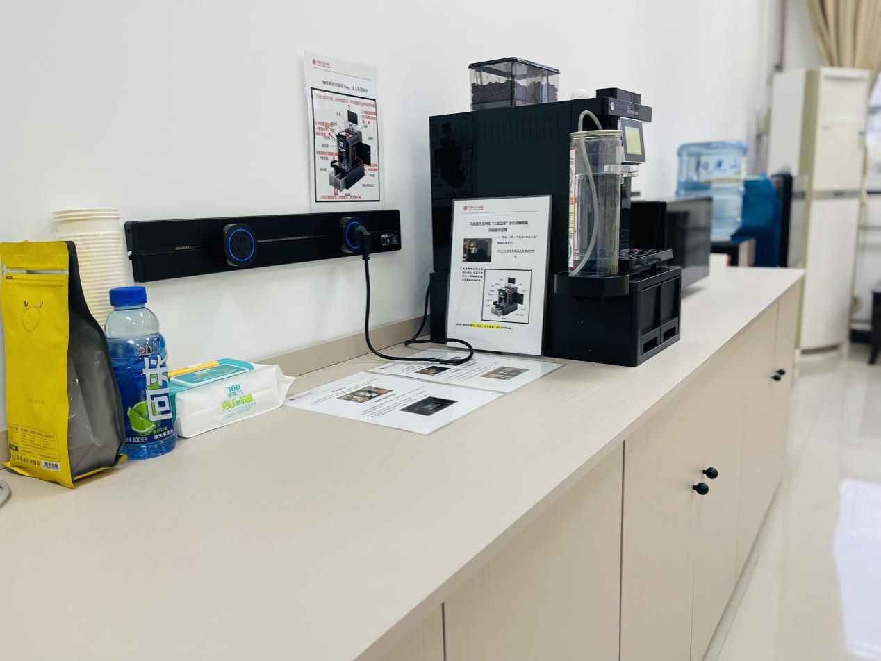 “马院小家”在建设过程中,充分体现“以人为本”的理念,添置了咖啡机、饮水机、微波炉、冰箱、消毒柜等物品和设备,整体由荣誉墙、师德榜样文化墙、茶歇室、咖啡角、乒乓球活动区等功能区块组成,为公司师生提供了一个学习工作之余放松身心、增进交流、增强体质、陶冶情操的栖息地。