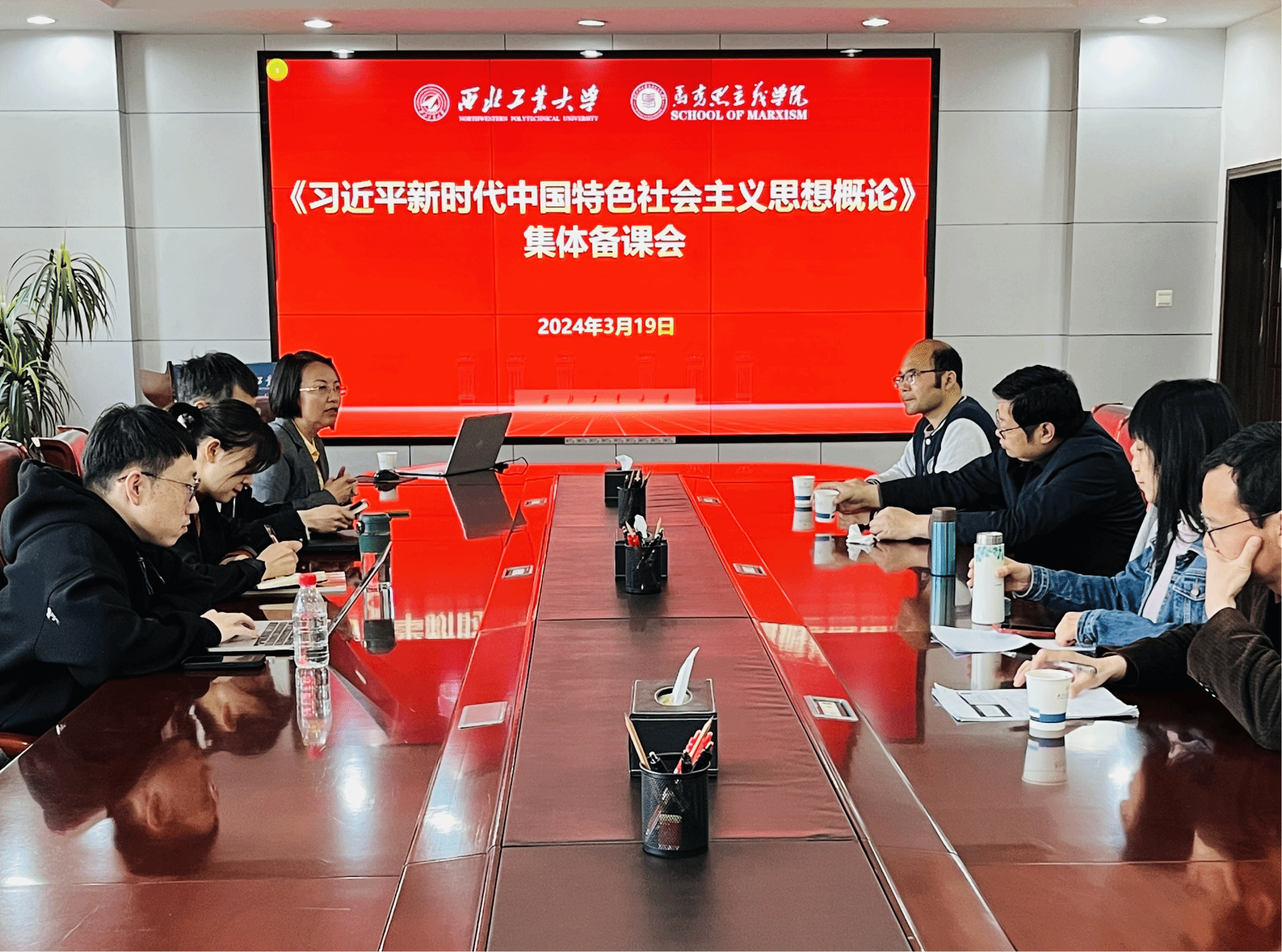 2024年3月19日下午,《习近平新时代中国特色社会主义思想概论》(以下简称《概论》)暨以习近平总书记思政课教师座谈会五周年为主题的集体备课会于长安校区公司楼208会议室举办。太阳成tyc122cc《概论》课教研室主任宁殿霞副教授主持会议,任课教师共同参加本次集体备课活动。