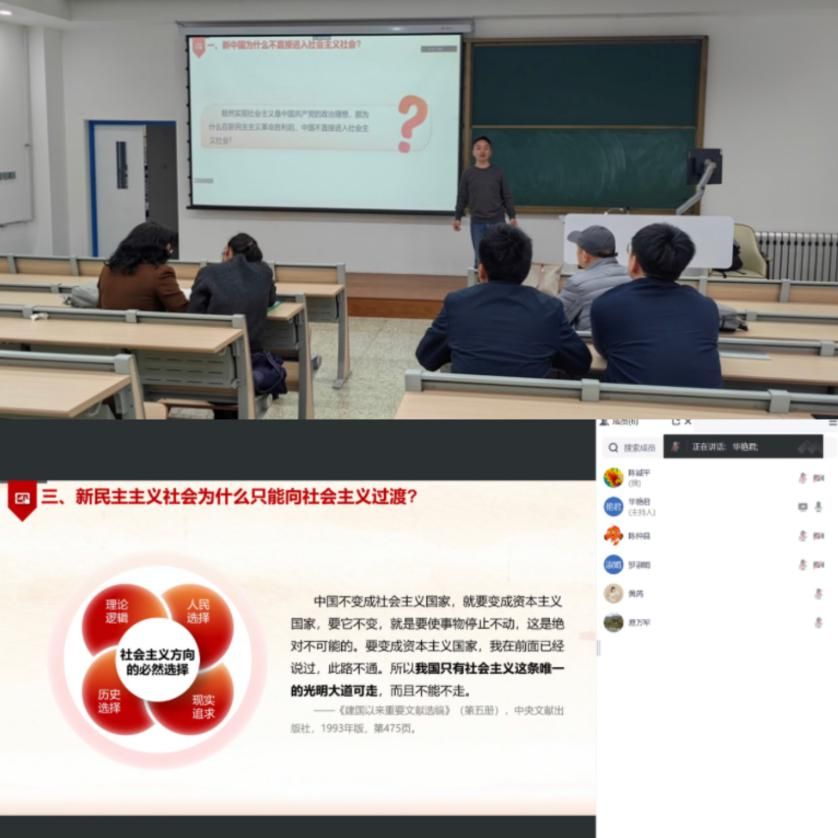 中国近现代史基本问题研究系于3月15日晚,通过线上与线下相结合的形式组织召开“习近平总书记思想政治理论课教师座谈会五周年”主题集体备课会。会议由系主任汪永平主持。会上,教学主任房小捷通报了公司和公司关于建设“育人文科”、实现院内外资源联动打造“大思政”格局、进一步做好思政课改革创新的要求和部署。接着,教师代表赵海霞从“以研促教”、“教学相长”、发挥教师主导和员工主体有机结合、充分利用公司及陕西丰富资源四个方面,做了如何贯彻落实习近平总书记“八个相统一”要求的报告。2023年陕西省思政课大练兵“教学能手”房小捷进行教学展示。随后,全体参会人员根据公司和公司的各项指导意见,围绕如何进一步实现“八个相统一”要求,不断加强“总师育人文化”引领作用,结合《中国近现代史纲要》课程教学改革进行了深入讨论,就教学案例库建设、教学环节改进、筹设小班研讨课、线上课程推进、提高备课会实效、教学改革课题申报、数字化课程资源建设形成了今后一段时间的具体工作计划和保障落实措施。