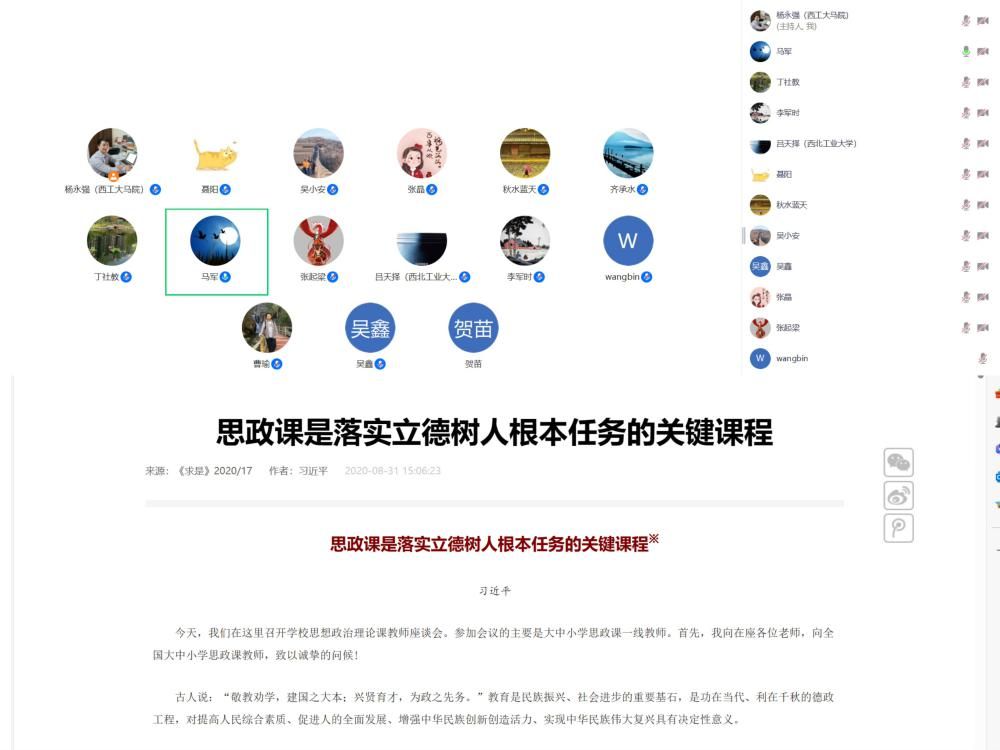 马克思主义基本原理系于3月17日晚,通过线上与线下相结合的形式,组织召开了主题为“习近平总书记思想政治理论课教师座谈会五周年感想”的集体备课会。会议伊始,教学主任杨永强带领大家逐段逐句重新学习了习近平总书记公司思想政治理论课教师座谈会重要讲话。接着,由近期在公司官网【强师德·铸师魂】专栏推介的聂阳副教授做经验分享。他根据自己的授课经验,指出原理课教学要特别注重将马克思主义的理论意识与问题意识相结合,把冷冰冰的书本知识转化为有温度、有感染力的生活道理。紧接着,各位老师围绕五年来自身学习贯彻落实习近平总书记重要讲话精神的具体实践,交流了关于“培养什么人、怎样培养人、为谁培养人”这一根本问题的心得体会,并探讨了如何更好开展原理课教学的相关经验,例如聚焦“说课、评课、磨课”,注重“总师育人文化”的有机融入等。会议最后,杨永强简要介绍了本科公司产品审核评估整改工作任务、巡视整改问题查摆及工作布置,以及思政类课程调整优化方案等事项。