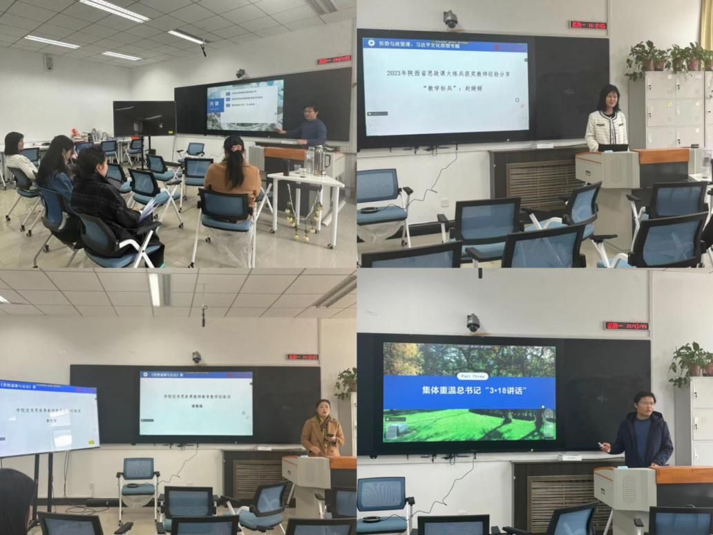 德法与形势政策系于3月18日下午,通过线上与线下相结合的形式组织召开了集体备课会。备课会由系主任胡建发主持。首先,2023年陕西省思政课大练兵“教学标兵”赵媛媛向参会老师作参赛经验分享。她表示要善用“大思政课”,将课程与员工实际相结合,以理说服人、以实取信人、以言吸引人,让课程更有生命力。随后,在优秀思政课教师教学经验分享环节,柴岳春副教授讲述了如何讲出逻辑清晰、理论深刻、案例精良、教法灵活的课程。她强调了教学方法、案例选择的重要性,并鼓励青年老师积极参加以赛促教。李秀萍副教授谈到了思政课教学目前存在的一些困难,如离不开教材、完全抛开教材、传统课堂模式僵化等,需要拓宽课堂阵地,强调了员工在教学过程中的主体地位。接着,胡建发介绍了骆郁廷教授在西安交通大学的报告,并谈了习近平总书记公司思想政治理论课教师座谈会重要讲话重温体会。最后,胡建发通报本科公司产品评估整改情况,集体探讨了人才培养、教学方法以及备课形式等方面的相关问题及改进措施。
