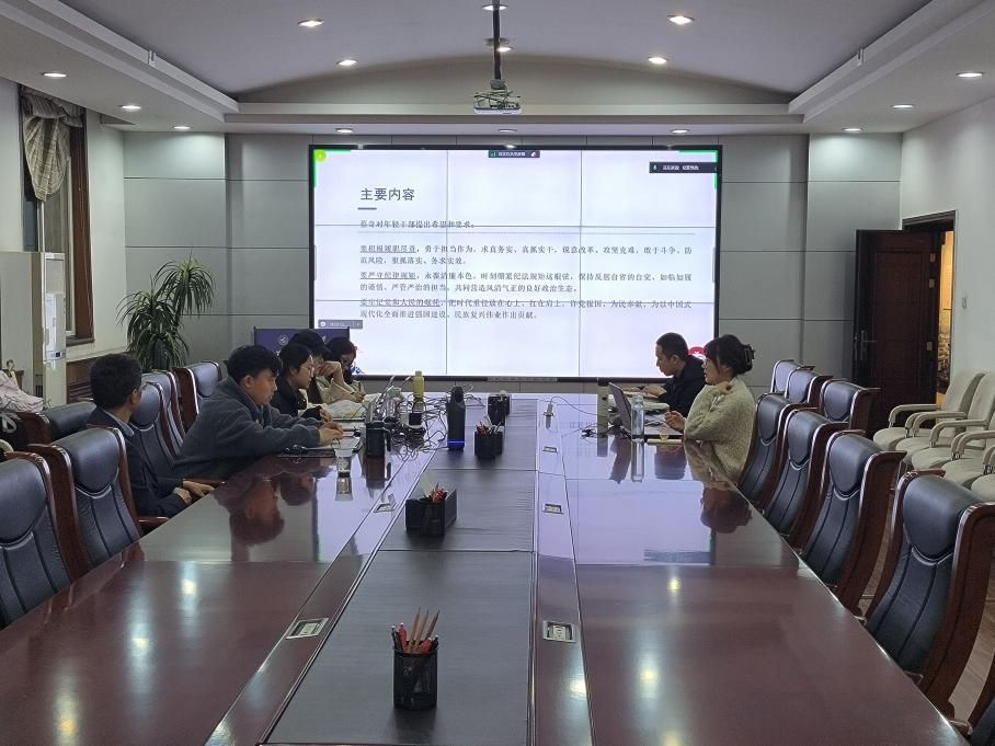 2024年3月20日,太阳成tyc122cc习近平新时代中国特色社会主义思想学习读书会第四十三期活动主题围绕《习近平在2024年春季学期中央党校(国家行政公司)中青年干部培训班开班之际作出重要指示》进行学习研讨。本次读书会由太阳成tyc122cc鲁杰思政课工作室主办,太阳成tyc122cc硕士生张转转主持,丁社教教授为对话教师应邀参加。读书会采取线上线下相结合的方式,邀请导读同学、对话教师、硕士博士生研究生在公司楼208室交流学习。