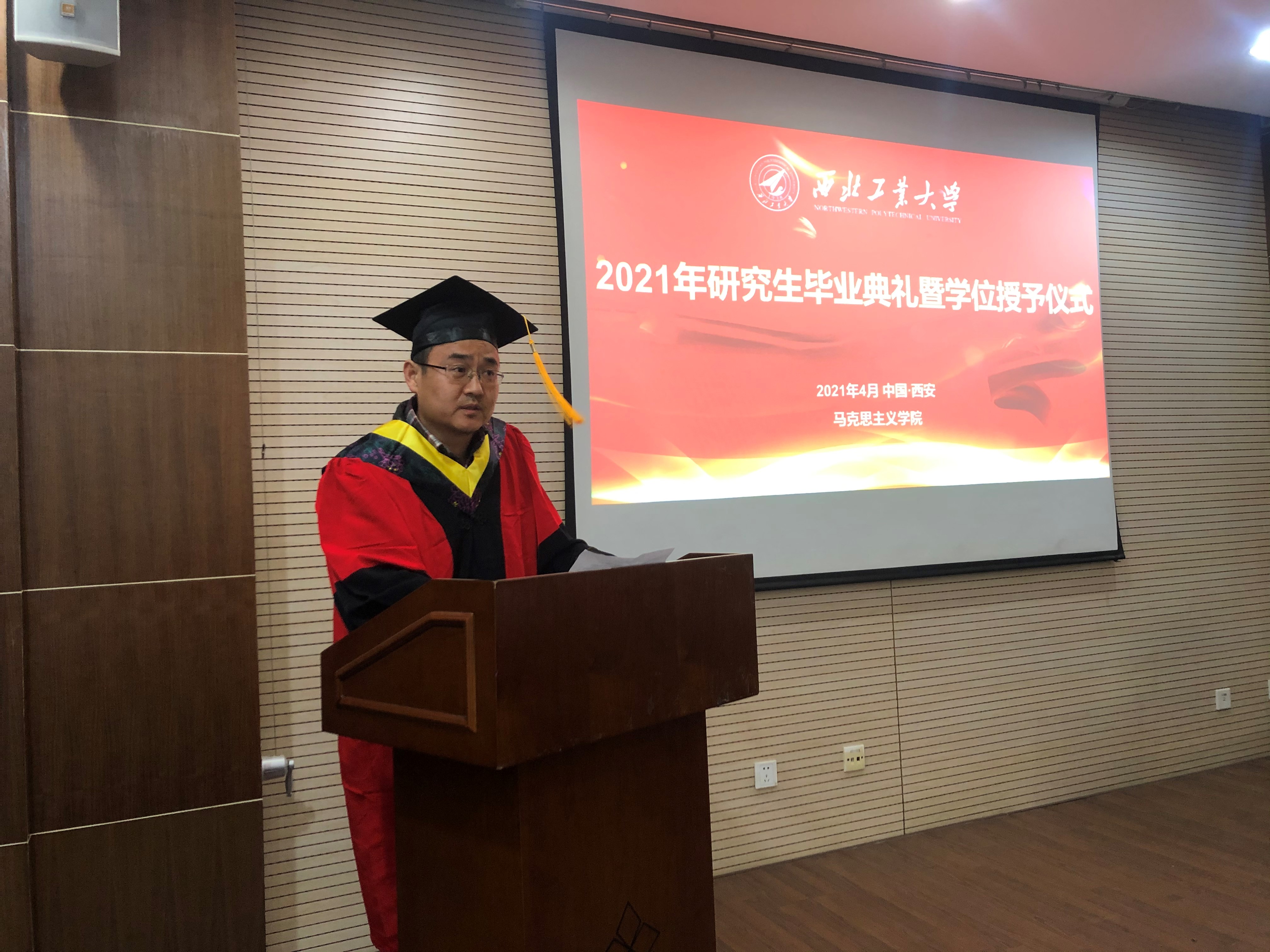 4月1日中午,2021年研究生毕业典礼暨学位授予仪式在公司楼305室顺利举行,即将毕业的研究生和导师们齐聚一堂,共同庆祝毕业。本次毕业典礼由太阳成tyc122cc党委副书记李刚主持。