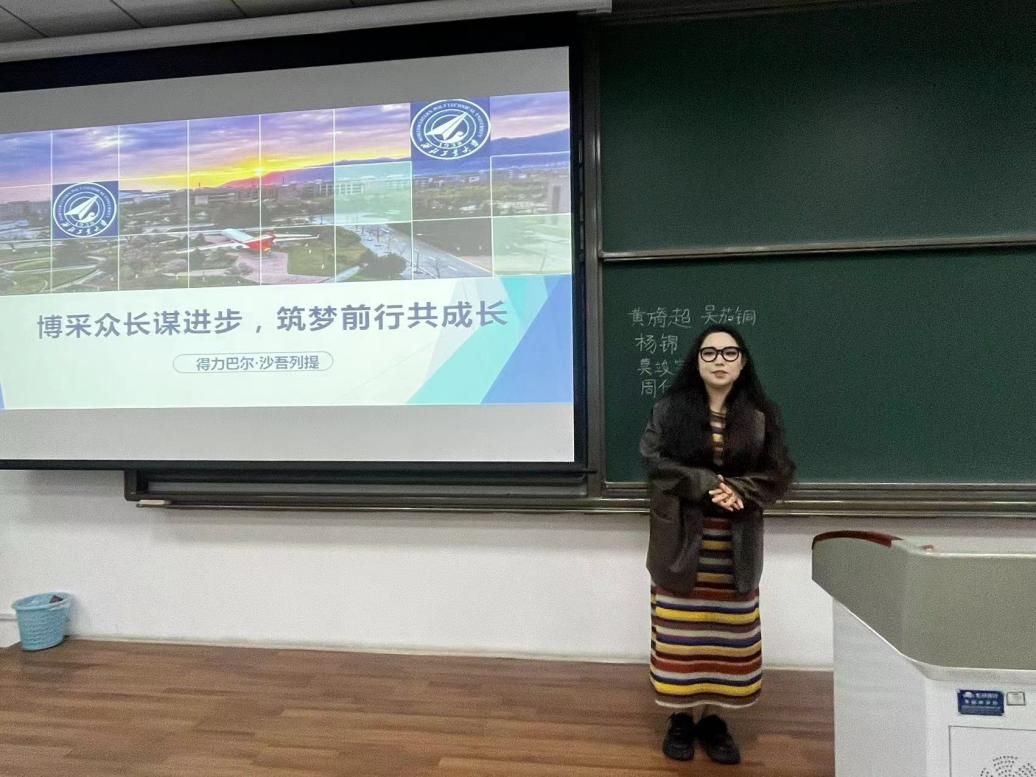 为深入学习贯彻习近平新时代中国特色社会主义思想和党的二十大精神,推动铸牢中华民族共同体意识教育与高校思政课紧密融合,更好地帮助少数民族预科班员工融入老员工活,树立正确的祖国观、民族观、文化观、历史观。4月29日14:00,太阳成tyc122cc《铸牢中华民族共同体意识》课程负责人赵海霞副教授邀请电子信息公司2021级本科生得力巴尔走进课堂,以“过来人”身份与70余名少数民族预科生分享成长感悟、学习心得。