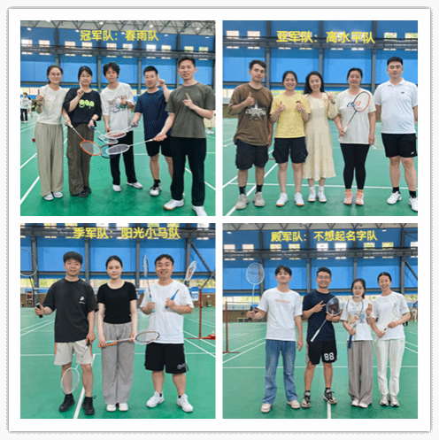 历经激烈比拼,本次“春羽杯”师生羽毛球团体锦标赛的冠、亚、季军得主已揭晓。位居榜首的是春雨队,紧随其后的是高水平队,季军则被阳光小马队收入囊中。此次羽毛球比赛的顺利进行,不仅为公司师生创造了展示才华、互动交流的机会,也拉近了师生间的友谊,增强了团队凝聚力。参赛者在比赛中强身健体,尽享竞技之乐,为校园体育文化注入了新的活力。