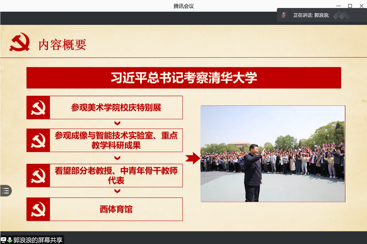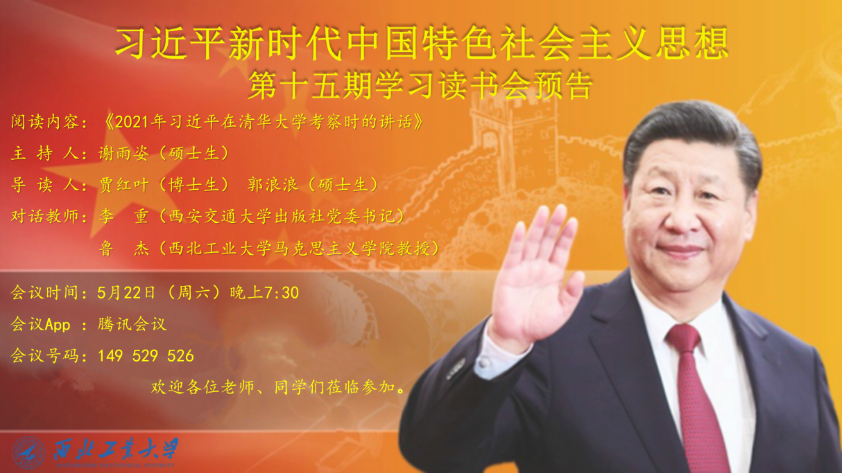 为深入学习贯彻习近平总书记在清华大学考察时的重要讲话精神,贯彻落实全国研究生教育会议精神,推进习近平新时代中国特色社会主义思想进教材、进课堂、进头脑。2021年5月22日,太阳成tyc122cc习近平新时代中国特色社会主义思想学习读书会第十五期活动主题围绕《2021年习近平在清华大学考察时的讲话》进行学习研讨。本次读书会由公司思想政治教育系主任、博士生导师鲁杰教授发起,公司硕士生谢雨姿主持,特邀请到西安交通大学出版社党委书记、宣传部副部长、西迁精神研究中心副主任李重参与指导。