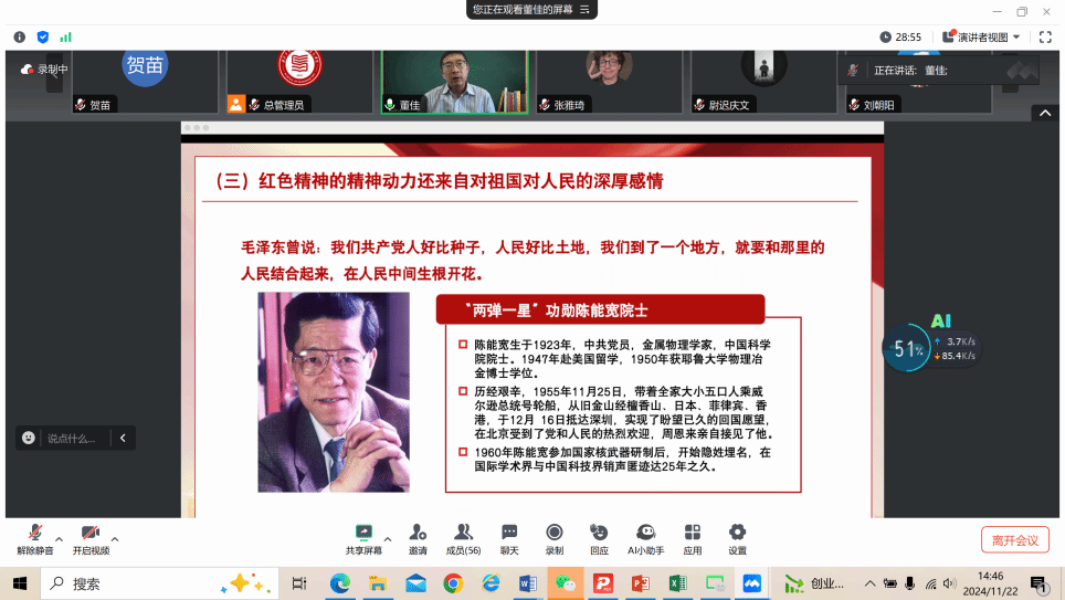 本期讲座董佳教授将深沉厚重的红色精神娓娓道来,在向师生牢固树立价值观引领的同时也为思政课教学模式改革提供了新的借鉴和参考。接下来,公司将持续深入开展新时代红色精神相关研究,积极探索和改进思政课教学改革新方法新模式,助力思政课教学高质量发展。