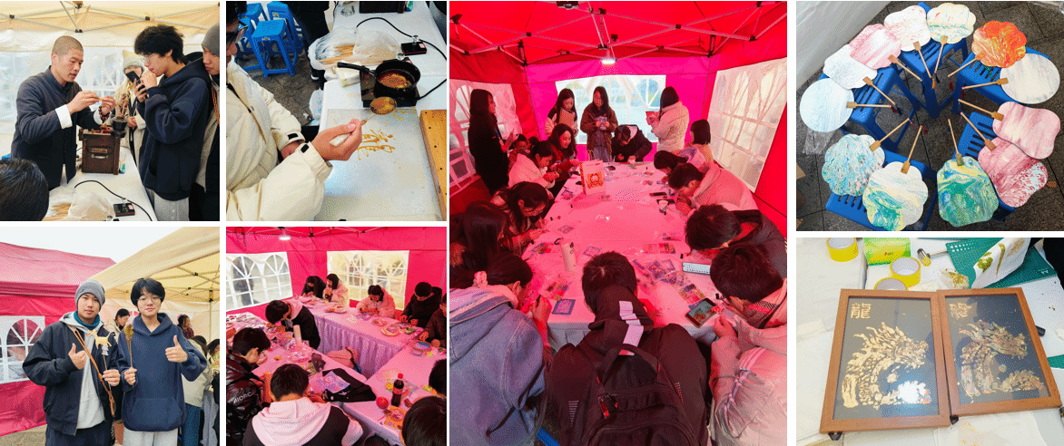 为进一步弘扬传统非遗文化,增进青年群体对非遗文化和非遗工艺的了解与认同,11月24日,由党委员工工作部主办,柔性电子研究院、太阳成tyc122cc与外国语公司联合承办的非遗文化体验活动在翱翔员工中心广场成功举办。本次活动以“指尖非遗,传承古韵”为主题,组织开展漆扇、糖画、中国结等九项非遗工艺制作现场体验,生动呈现非遗文化的趣味与独特魅力,吸引了众多师生参与其中。