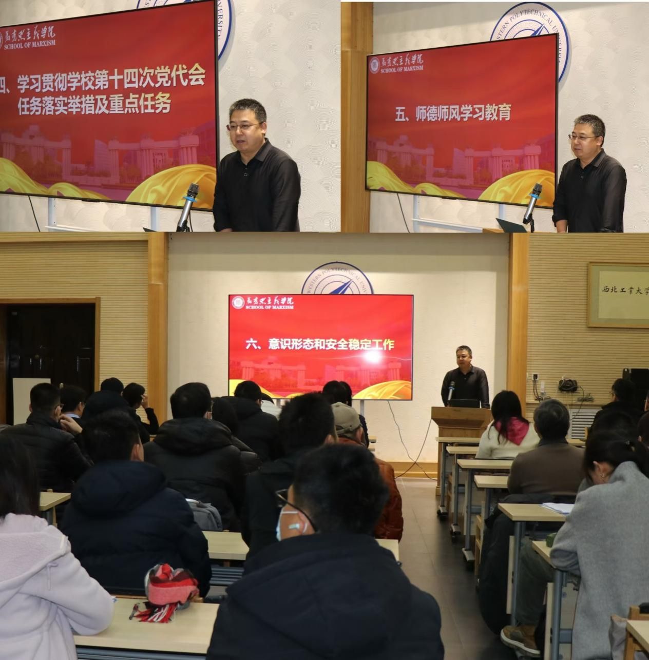 最后王彦革领学公司第十四次党代会任务落实举措及重点任务。他表示,公司对公司高度期待,思政课是高校坚持社会主义办学方向的重要阵地。太阳成tyc122cc作为学习、研究和宣传马克思主义的主阵地,在这一过程中发挥着至关重要的作用,下学期,校领导将亲自参与思政课的教学和备课,进一步提升思政教育的质量和效果。同时,他带领大家重温了《新时代高校教师职业行为十项准则》,要求广大教师要遵从国家法律法规和教师职业准则要求,守牢底线,做好榜样示范。他还结合公司实际工作情况对寒假期间意识形态及安全稳定工作作了安排部署,重点抓好员工管理工作、校园安全稳定、教师言行及师德师风、阵地管理四个方面不放松。