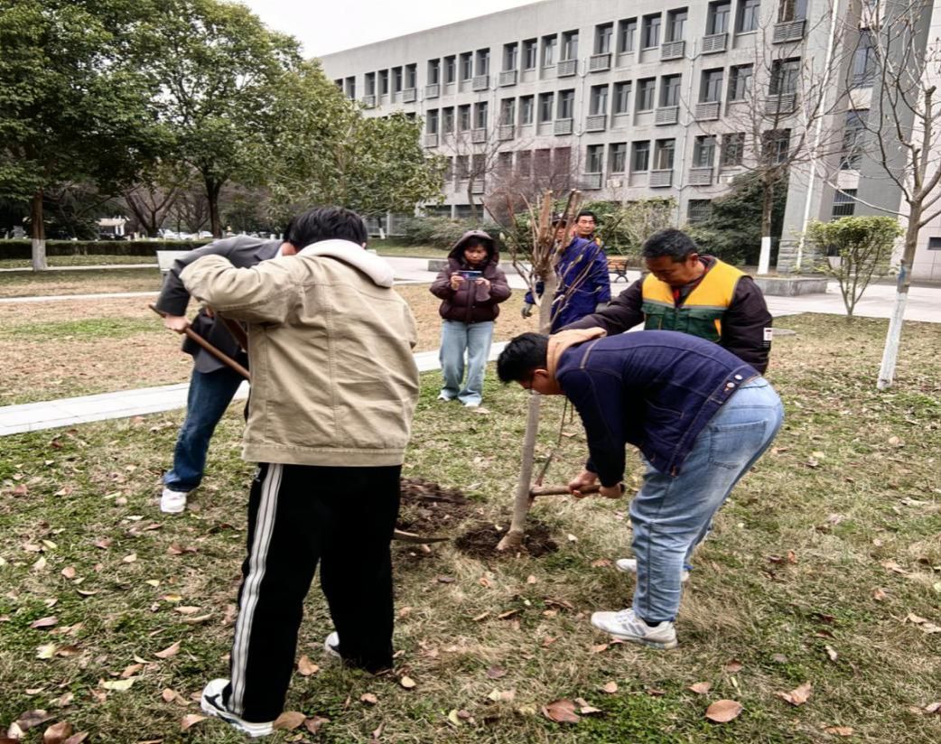 2023级硕士研究生徐千懿表示:“平时多在课堂学理论,今天在泥土里出力流汗,才真正体会到‘劳动创造幸福’的含义。”即将毕业的2025届硕士研究生与研一研二学子携手种下象征传承与感恩的树苗,通过植树行动表达着真挚的爱校荣校情感和与公司始终共奋进的坚定决心。