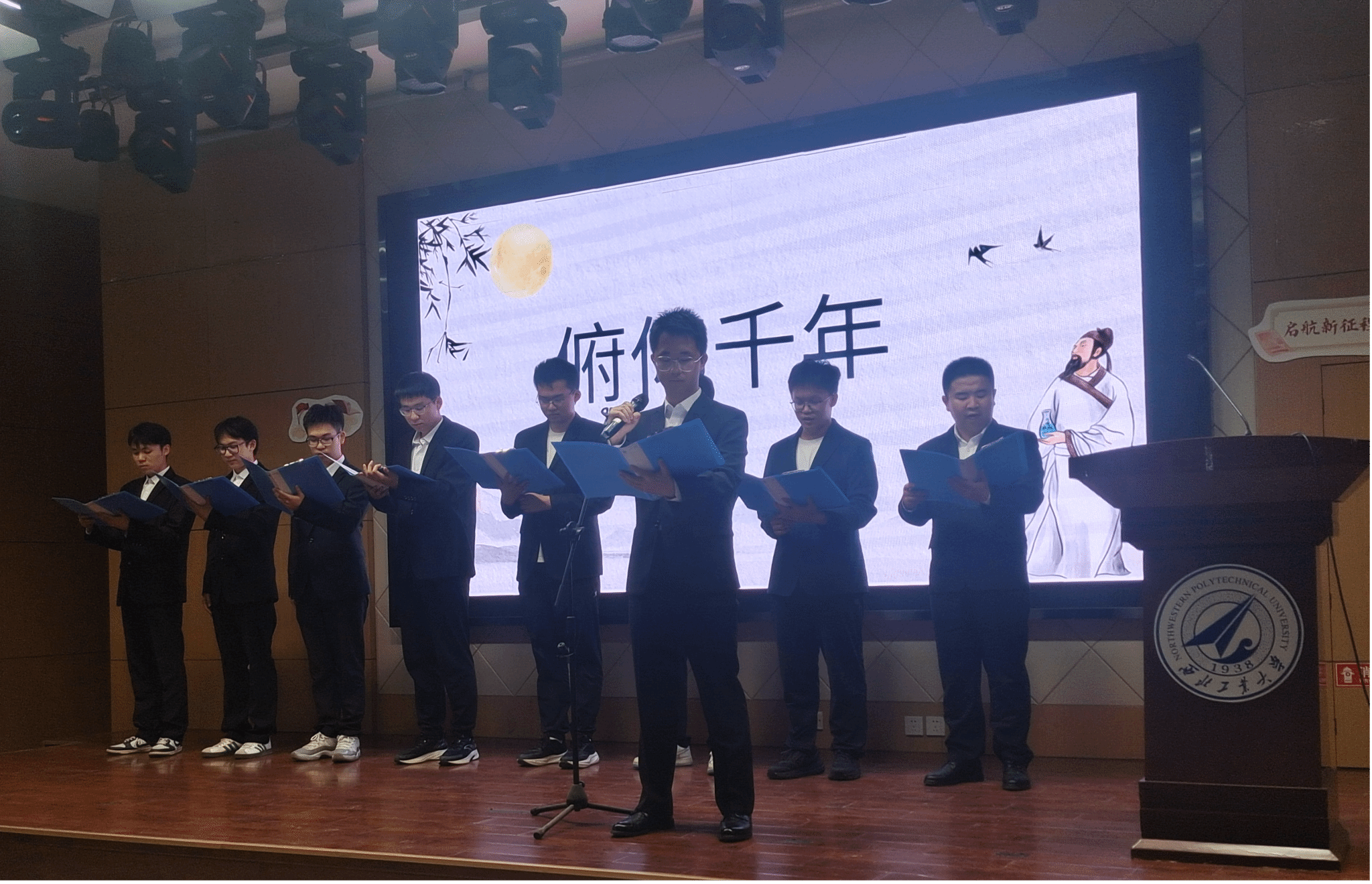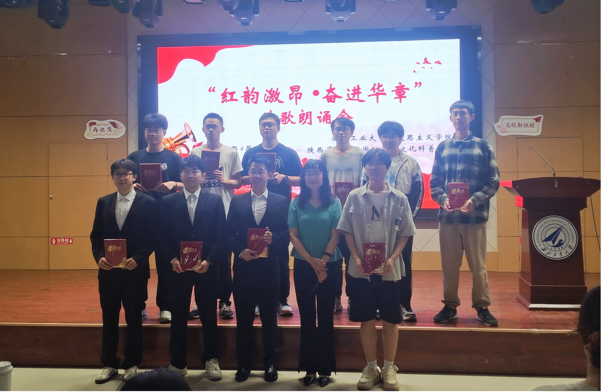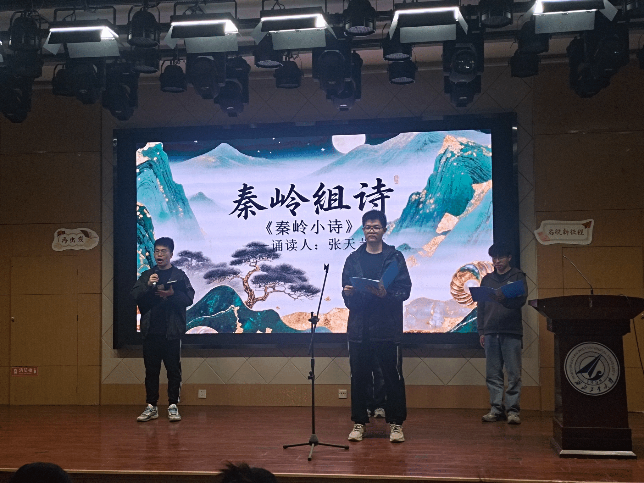 4月19日晚,在207报告厅,参加诗歌朗诵会的同学经过抽签,筛选出来自全校的十个朗诵小组,现场朗诵并表演他们自创的诗歌作品,其余同学提交朗诵视频参赛。这些作品有的抒写家乡建设的成就、生态文明的奇迹,有的讴歌共和国筚路蓝缕的历程、祖国日新月异的巨变,有的表达对科技前辈的尊敬与仰望、科技喜报频传的自豪,有的遥想古路坝灯火、表达今日工大学子进取奋发的豪情,有的抒发青春理想、礼赞科技报国……现场诗声琅琅、同学们激情澎湃,展现出西工大学子奋进向上的昂扬风貌。