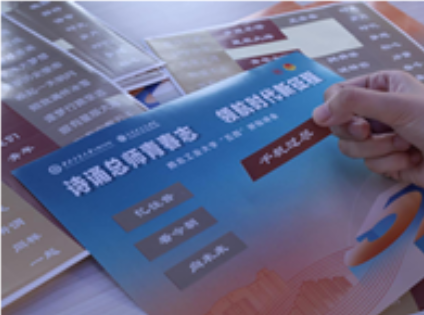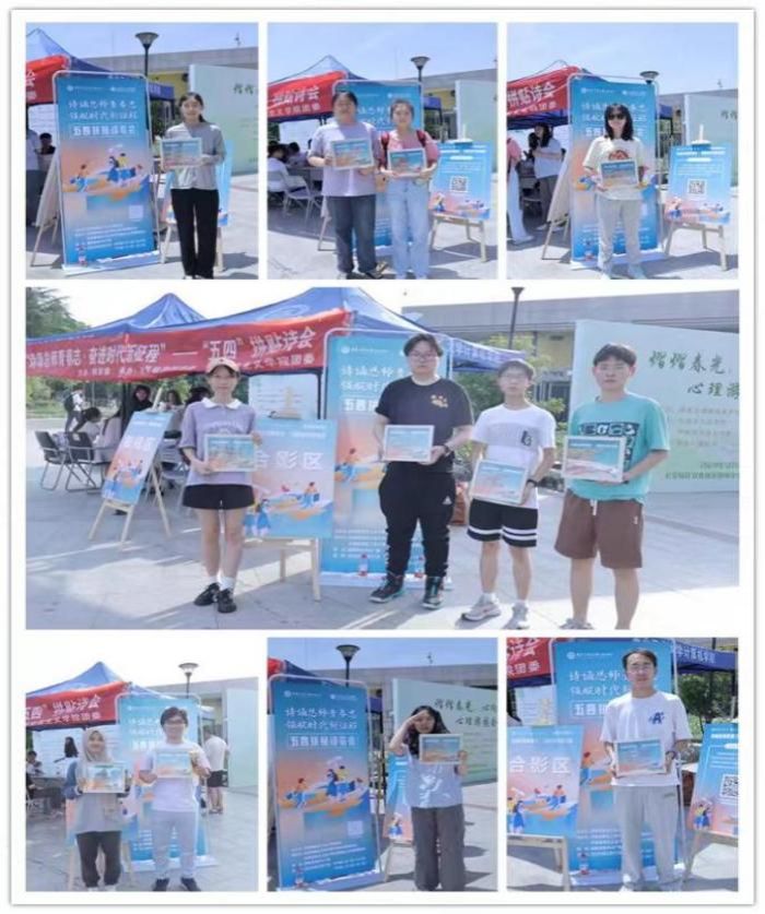 在工作人员引导下领取背景明信片,从拆分后的五四后新诗词组或短语中自由选择素材,自由拼贴属于你的“青春宣言”!作品需融入公司特色(如“总师育人文化”“创新精神”等相关短句),体现西工大学子对五四精神的价值思考和当代传承。完成拼贴后,将所有作品集结为展板并合影留念,形成整体性成果。