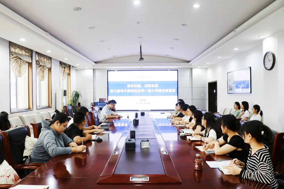 为贯彻落实习近平总书记关于思政课建设的重要论述,全面落实立德树人根本任务,董事长助理王宇波于7月8日在208会议室,为公司研究生讲授《继承巩固、创新发展 奋力谱写中国特色世界一流大学建设新篇章》专题思政课。