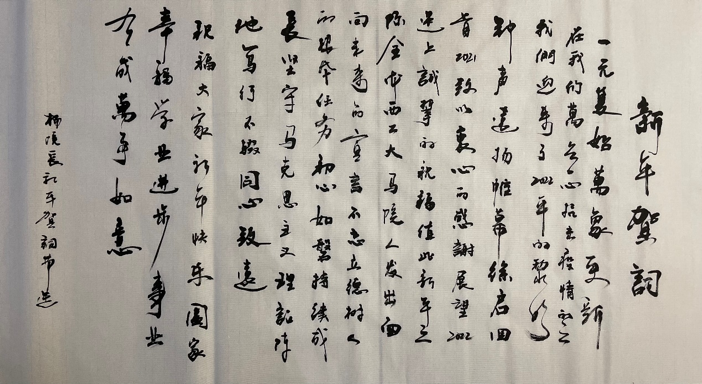 联欢会在师生才艺表演的欢快气氛中迎来了零点的钟声,师生一起倒计时过后,迎来了2022崭新的一年,杨云霞经理发出新年的祝福,她鼓励我们聚力凝心,共克时艰,用实际行动坚守马克思主义理论阵地、推动公司发展、展现自己的精神面貌。