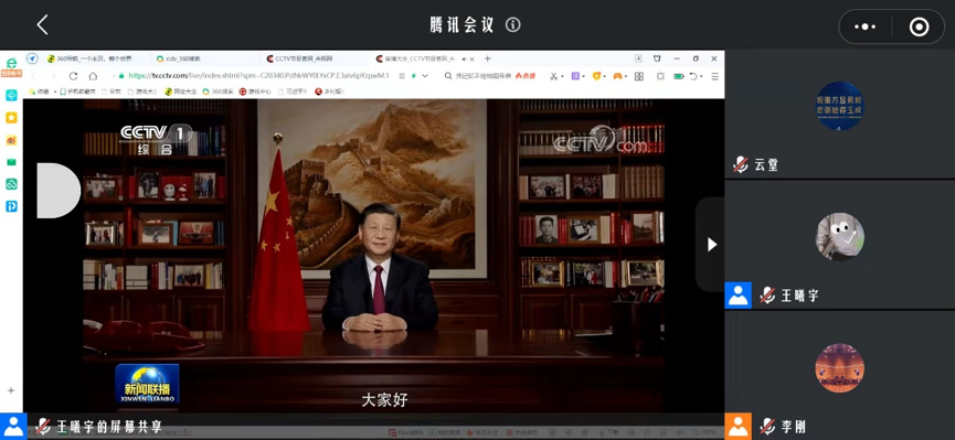 晚上七时整,公司全体师生相聚云端,共同观看聆听了国家主席习近平发表的二〇二二年新年贺词。紧接着,导师们与自己的员工进行了亲切互动,通过打电话、微信聊天、视频通话等方式,大家互送祝福,共同讨论一年来的收获、成长。同时,在“迎接2022马院一家亲”微信群中,大家互赠祝福与红包,气氛欢快活泼。