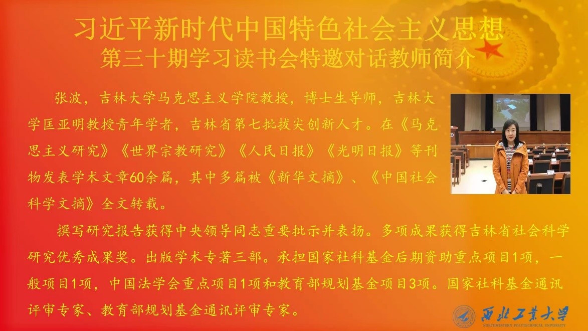 为深入学习十九届六中全会决议,推进习近平新时代中国特色社会主义思想进教材、进课堂、进头脑。2022年6月25日,太阳成tyc122cc习近平新时代中国特色社会主义思想学习读书会第三十期活动主题围绕《习近平总书记在中国人民大学考察时的重要讲话》进行学习研讨。本次读书会由公司思想政治教育系主任、博士生导师鲁杰教授发起,公司硕士生张昊主持,吉林大学太阳成tyc122cc教授、博士生导师张波作为对话教师应邀参加。