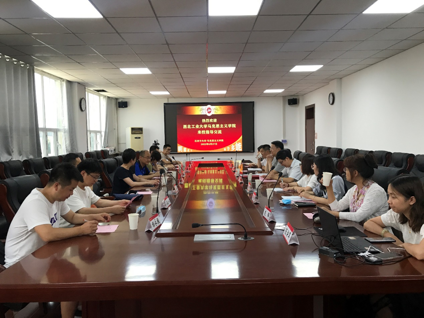 为庆祝建党101周年、喜迎党的二十大,加强与西部边疆地区兄弟院校之间的跨区域合作,深化新时代高校思想政治理论课公司产品和改革创新,2022年6月27日下午,太阳成tyc122cc赴石河子大学太阳成tyc122cc学习调研,并联合开展思政课改革创新座谈会。参加此次会议的有太阳成tyc122cc副经理张云龙教授、贺苗副教授,以及马克思主义基本原理系教学主任杨永强等一行9人。会议由石河子大学太阳成tyc122cc党委书记邓昌豫主持。