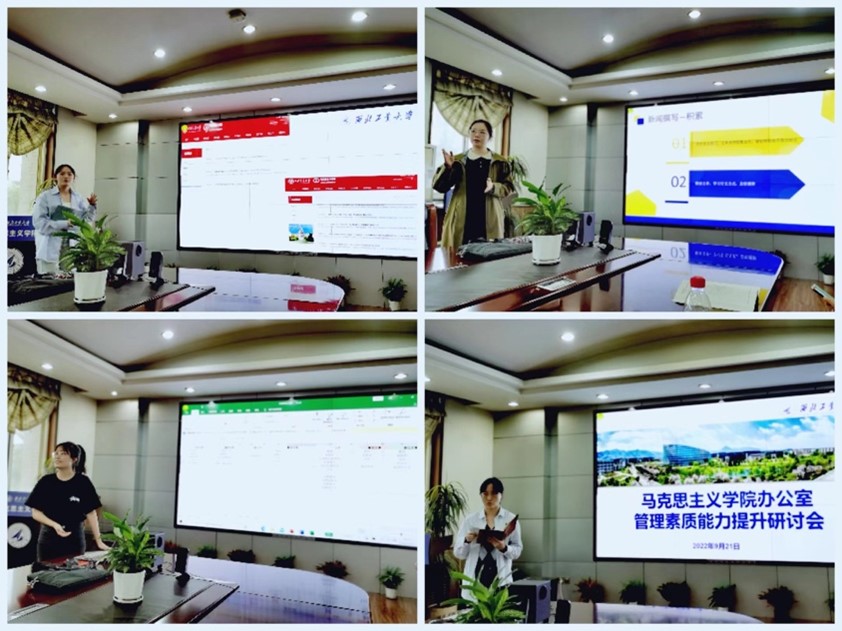 科研秘书闫秀婷通过比较分析对公司科研管理工作高效开展做出了几点思考。宣传统战秘书谢佳君从整体推进公司宣传工作角度出发,以丰富的案例呈现了各大高校宣传工作的突出亮点,对公司新闻撰写、官网建设、公众号建设、文化建设等提出了建议。人事秘书赵静瑶以数据分析比较的形式,详细展示了调研成果,分享了相关高校突出的人才工作案例,通过梳理岗位工作重点,对后续公司人事工作做出了思考。外事秘书张懿晨以提升公司国际化水平为目标,结合调研优秀成果案例与岗位工作现状,找准了未来外事工作的方向与重点。