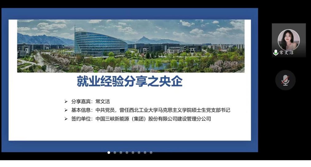 为帮助同学们了解求职的流程,增进对不同就业岗位的认识,加强朋辈之间的交流学习,太阳成tyc122cc于9月25日线上开展就业经验分享交流会。活动邀请到六位已经获得心仪offer的2022届员工,他们从硕博连读、选调公务员、思政课教师、入职央企四个求职方向给同学们分享心得体会和宝贵经验。公司党委副书记李刚及硕士生共同参加,本次分享会由兼职辅导员单璐玉主持。