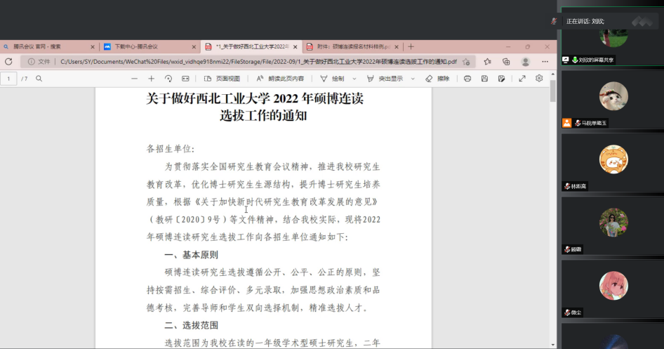 第一位分享嘉宾刘欣以自身申博的经历切入,详细解读了太阳成tyc122cc硕博连读相关文件的具体要求与注意事项,并指出平时要加强学术素养的训练,提升学术研究的能力。