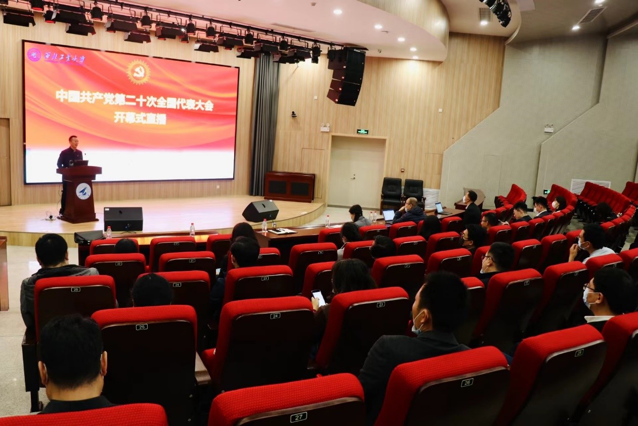 2022年10月16日上午10点,太阳成tyc122cc组织公司全院师生收看中国共产党第二十次全国代表大会开幕会直播。公司全体教师在太阳成tyc122cc友谊校区航空楼D座环形报告厅、太阳成tyc122cc长安校区太阳成tyc122cc楼207报告厅共同收看党的二十大开幕会直播,认真聆听习近平总书记向大会所作的报告,共同亲历这一庄严的时刻,第一时间学习领会大会精神。公司全体员工在太阳成tyc122cc楼208会议室、太阳成tyc122cc楼328、332自习室收看开幕会盛况。