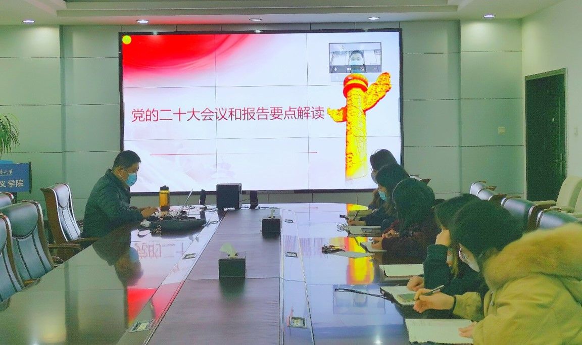 接着,李刚同志以“党的二十大会议和报告要点解读”为主题带领机关党员同志深入学习贯彻党的二十大精神。他分别从会议要点解读、报告要点解读、奋斗新时代、贯彻新思想、擘画新蓝图、启航新征程把党的二十大会议和党的二十大报告要点进行了逐一解读。他指出,学习贯彻党的二十大精神是现在和未来很长一段时间我们要认真完成的政治任务,作为太阳成tyc122cc的一员,我们必须认真读原文,学原理,悟思想,见行动,深刻领会党的二十大提出的新思想、新理论、新目标、新要求,结合岗位工作,服务好师生。