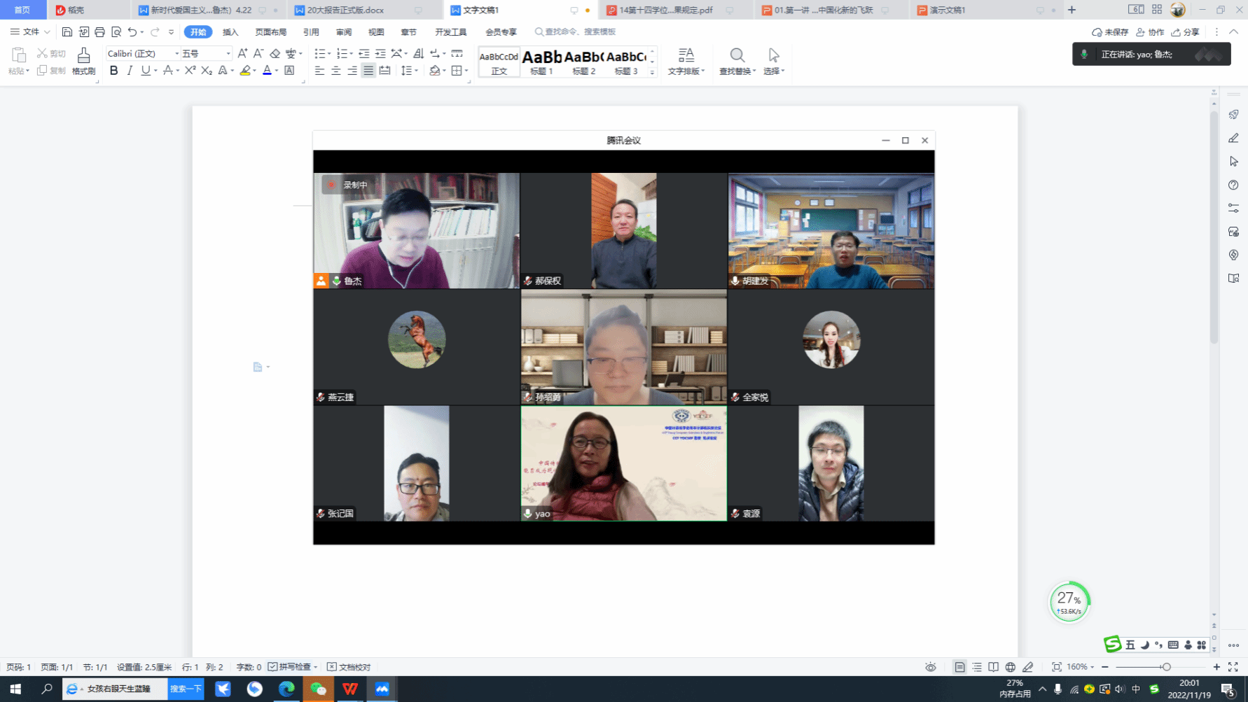 2022年11月19日19:30,太阳成tyc122cc思想政治教育学科全体硕士生导师和部分博士生导师用腾讯会议方式召开导学座谈会,会议由学科负责人鲁杰教授主持。