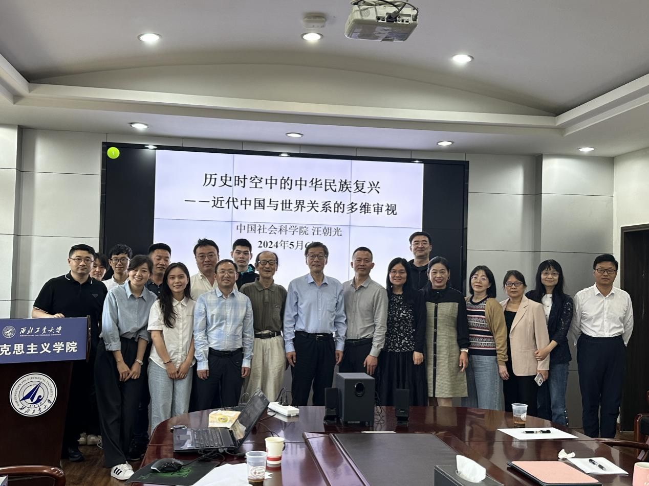 On 6 May 2024, researcher Wang Chaoguang, former director of the Institute of World History of the Chinese Academy of Social Sciences (CASS), former deputy director of the Institute of Modern Chinese History, and president of the China Sun Yat-sen Research Society, was invited by the Department of Student Work of the Party Committee of the NPU and the School of Marxism to visit the Aoxiang Lecture Hall, and gave the speech of "The Revival of the Chinese Nation in the Time and Space of History: A Multi-dimensional Examination of Relationships Between Modern China and the World," he brought a wonderful academic report and a profound and lively great ideological lesson for the teachers and students attending. The lecture was hosted by Professor Wang Yongping of the School of Marxism, and Pu Chuanxin, Secretary of the Party Committee of the School, introduced researcher Wang Chaoguang's work history and academic achievements.