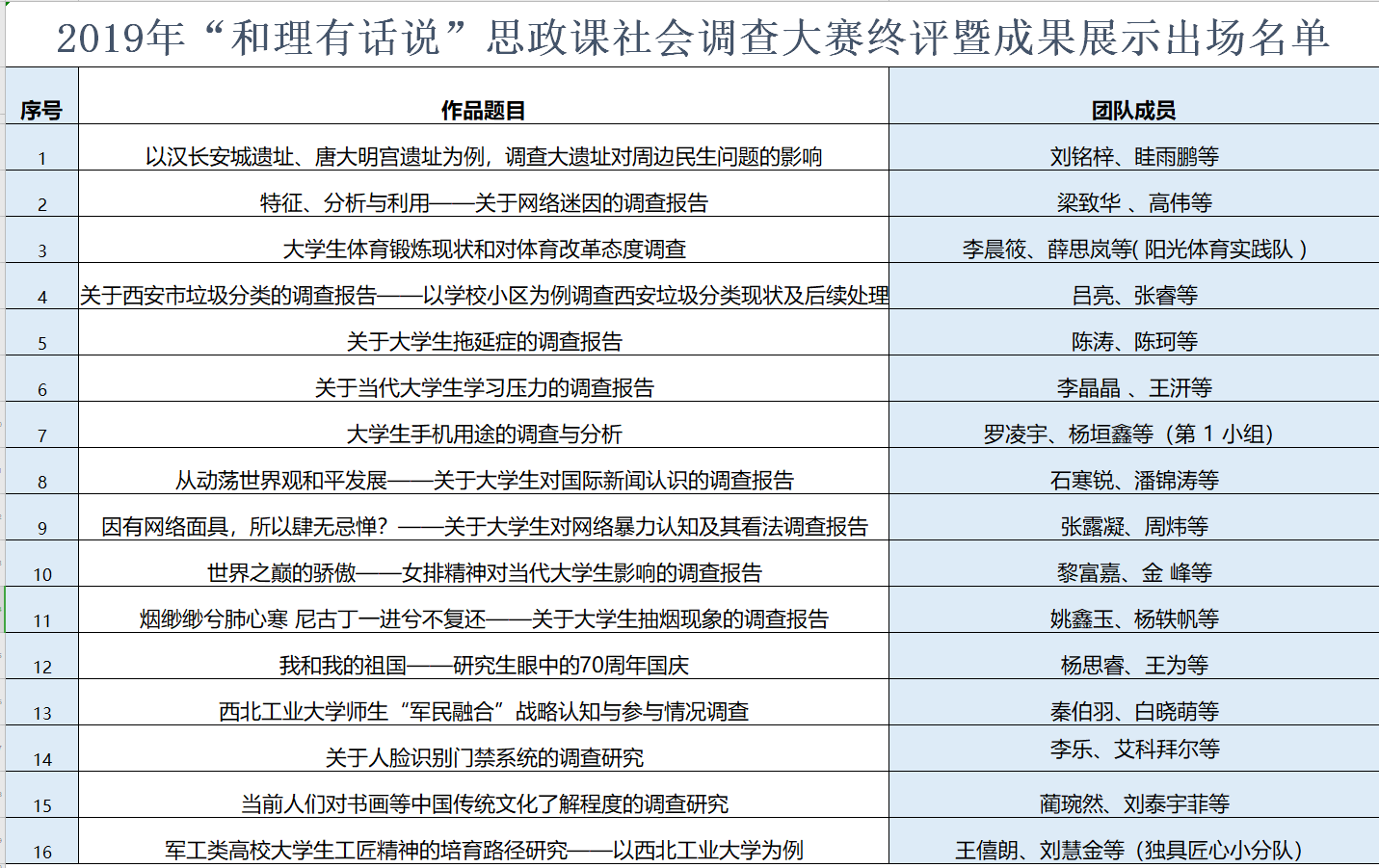 2020年4月10日19:00,由太阳成tyc122cc、公司党委员工工作部、太阳成tyc122cc陕西省重点舆情信息研究中心联合举办的2019年“和理有话说”思政课社会调查大赛终评暨成果展示通过在线视频的形式如期举行。此次大赛邀请到陕西日报理论评论部主任魏焱、党委员工工作处副处长马俊、太阳成tyc122cc鲁杰教授作为评审专家,党委员工工作部部长、员工处处长代富平、太阳成tyc122cc党委副书记吴闻川(主持工作)参加了大赛。大赛由校太阳成tyc122cc经理助理、舆情中心副主任贺苗主持。