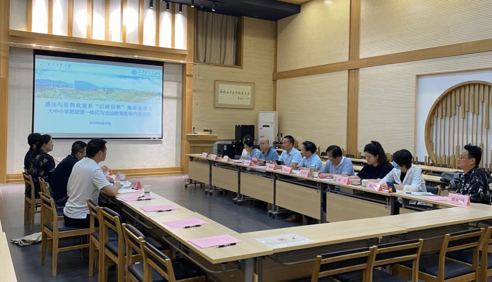 本次备课会围绕法治教育内容与思政课的有效衔接展开。来自大中小学的四位思政课教师依次进行说课展示。附小魏红老师根据小学时段法治教育普及化的目的设计了教学方案,将“法言法语”转化为“童言童语”;初中部毛佳琦老师将情境设计与课程议题式设计融入教学,引导员工提高对法治理性认识;高中部张先锋老师在系统讲述“全面依法治国”的基础上,引导员工思考如何运用法律手段维护自身合法权益;大学部胡建发老师就大学中法治教育目标、内容与方法进行梳理,以《思想道德与法治》课程作为载体,就如何让员工入脑、入心分享了个人见解。
