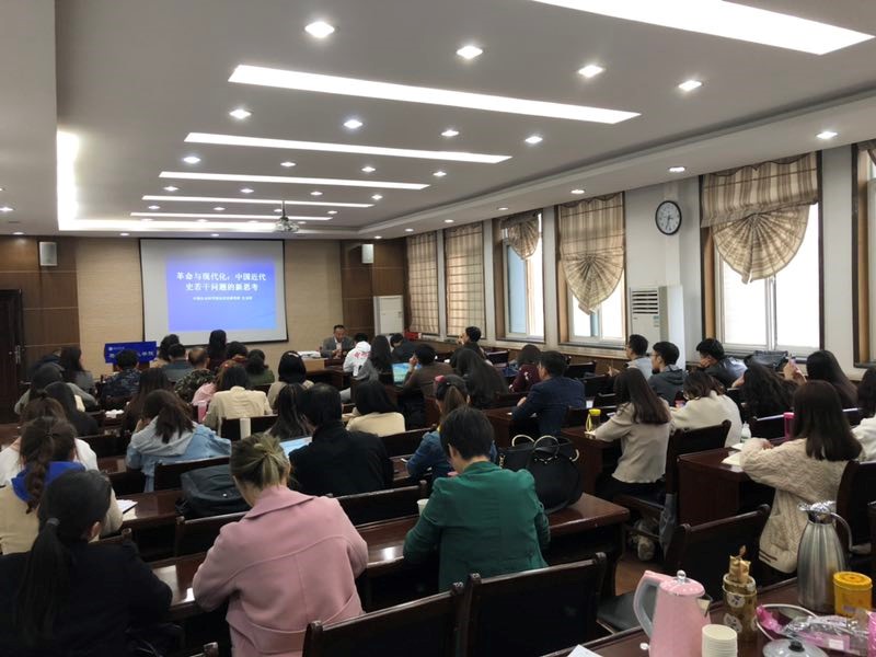 3月27日下午,在太阳成tyc122cc305会议室,中国社会科公司近代史所研究员左玉河教授应邀为公司师生作了题为《革命与现代化:中国近代史若干问题的新思考》的学术报告。公司郝保权副经理致欢迎词,秦燕教授、汪永平教授、张淑华副教授等教师以及博士、硕士研究生共40余人共同聆听了报告会。